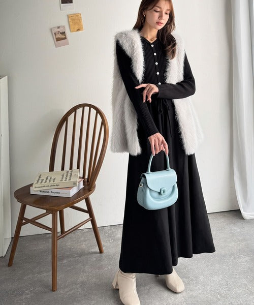 中にシアートップスを合わせたり、トレンドのファーベストを合わせたレイヤードスタイルもこなれた印象に♪