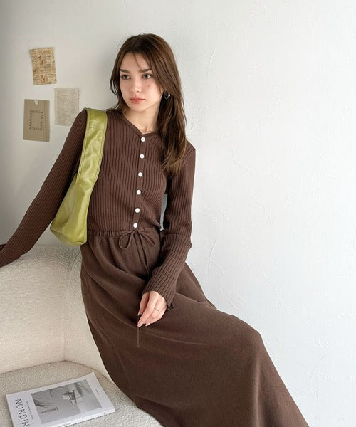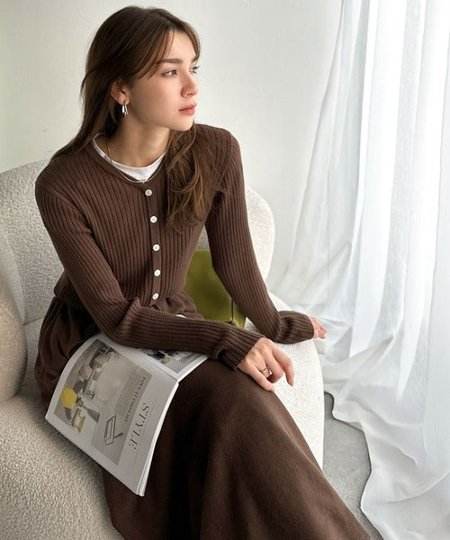 リブ編みの上半身が美しいシルエットを作り出し、さまざまなシーンで活躍します♪