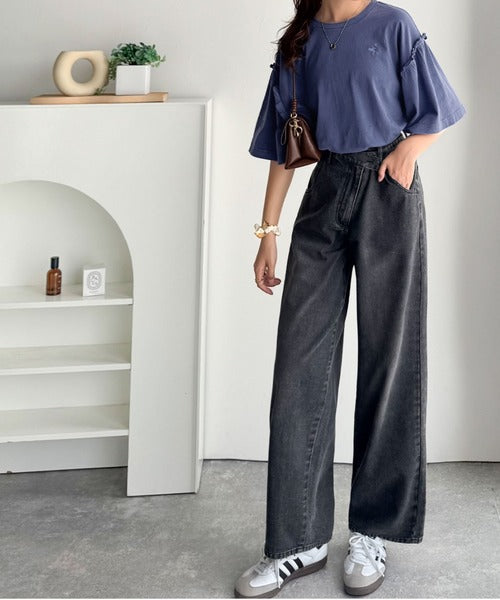 フリル袖で甘さを添えた、大人のカジュアルTシャツ。