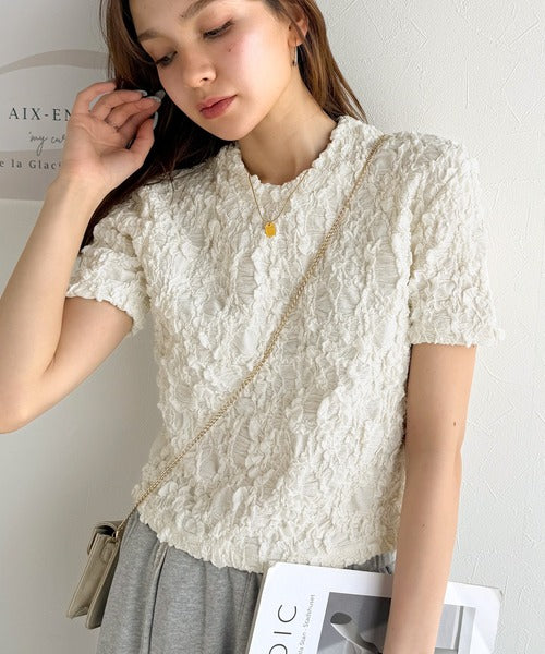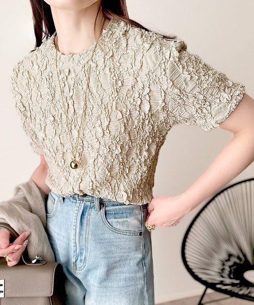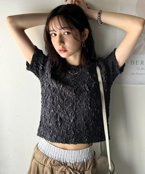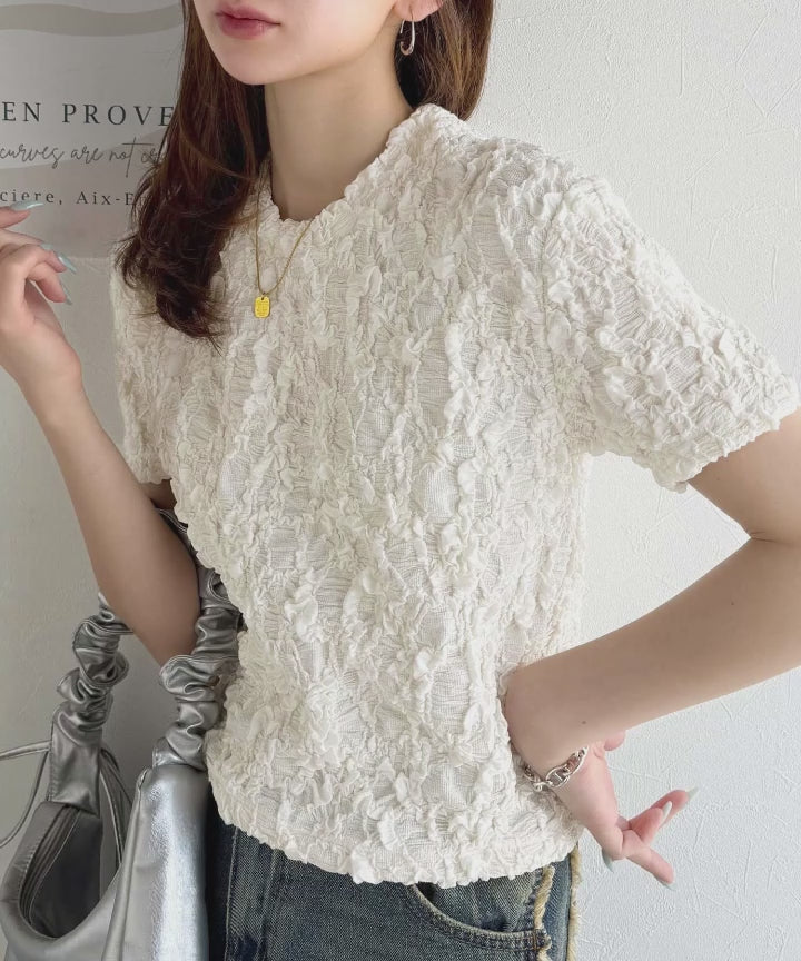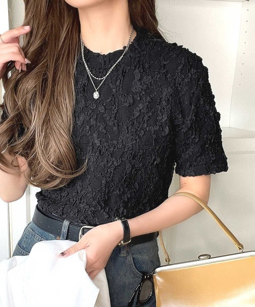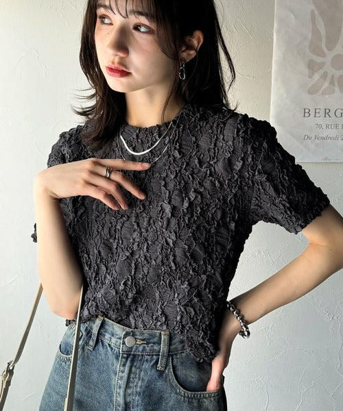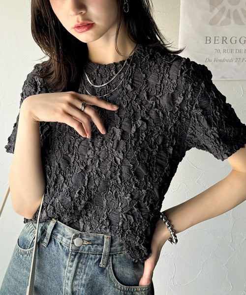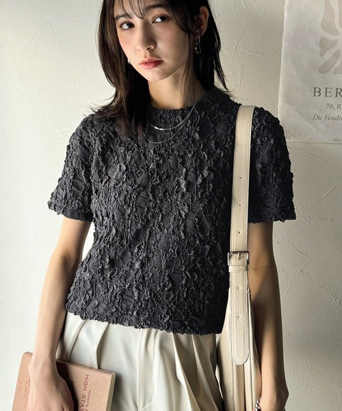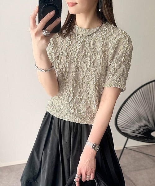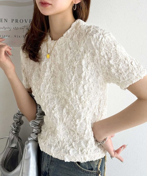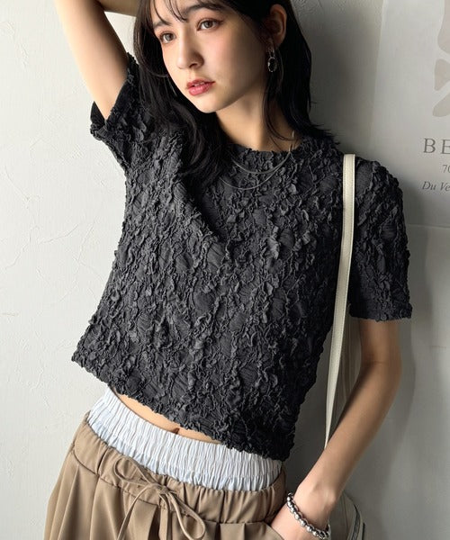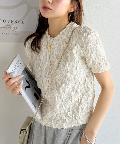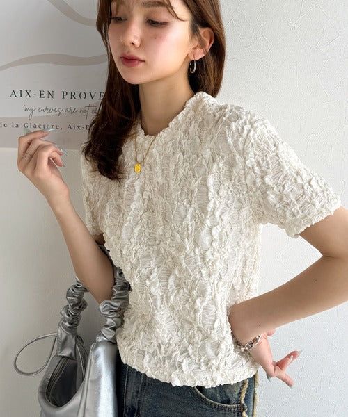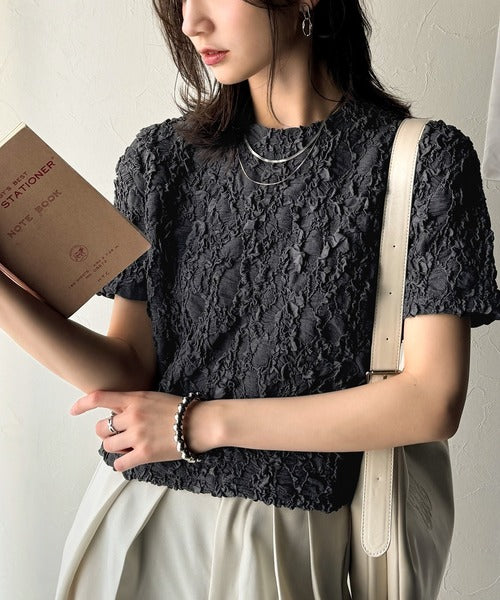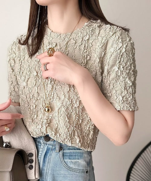 華やかな高級感を演出する。カットジャガード短丈Tシャツ(半袖) ce1050273