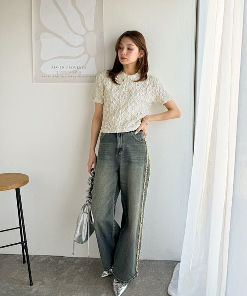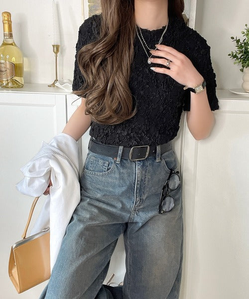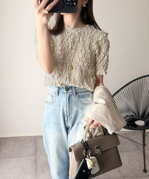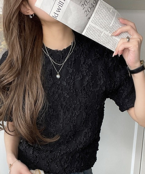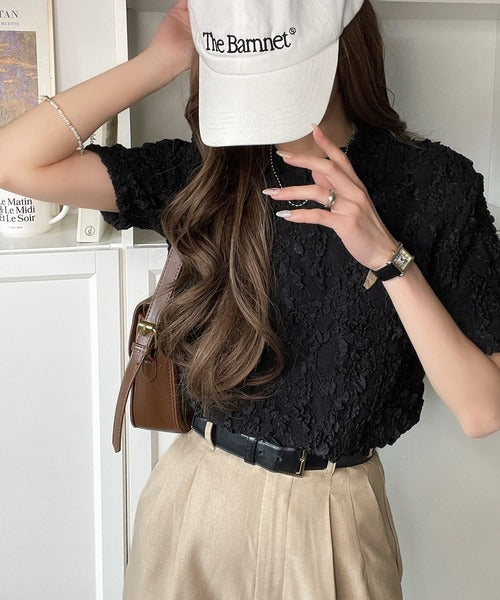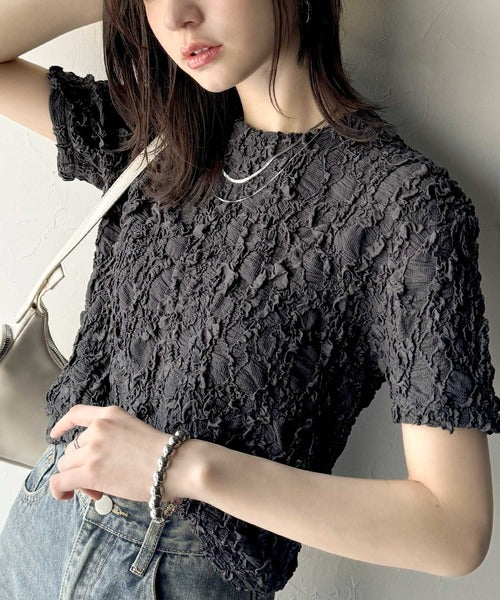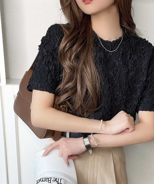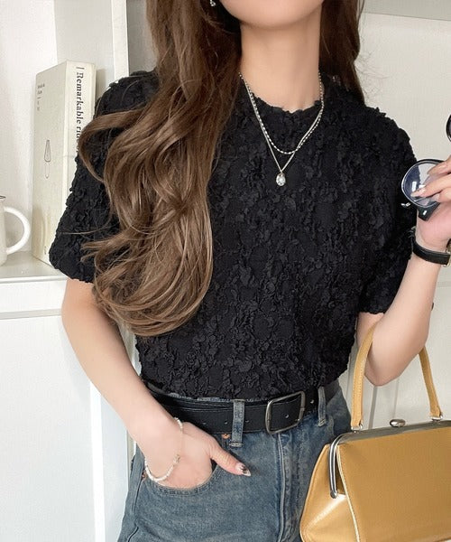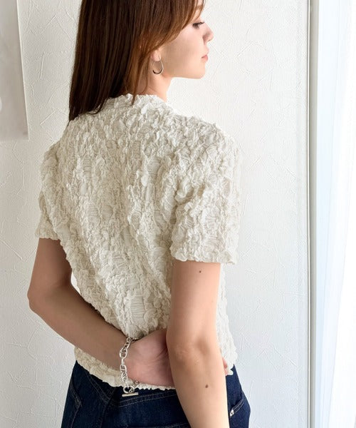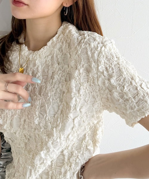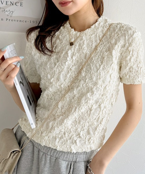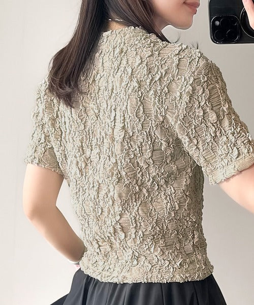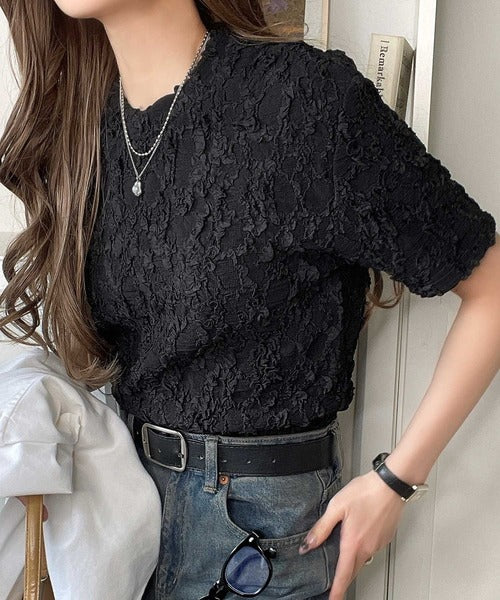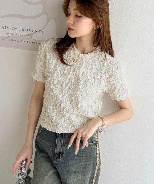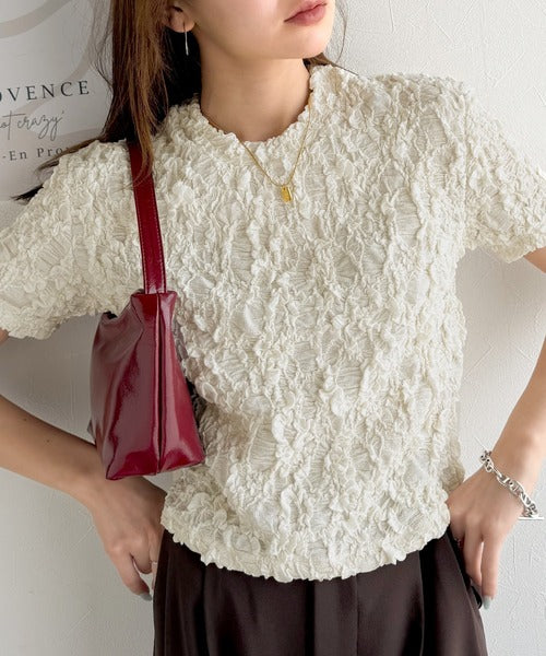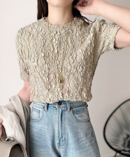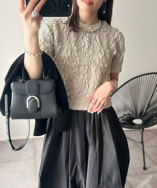 華やかな高級感を演出する。カットジャガード短丈Tシャツ(半袖) ce1050273
