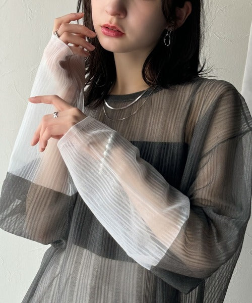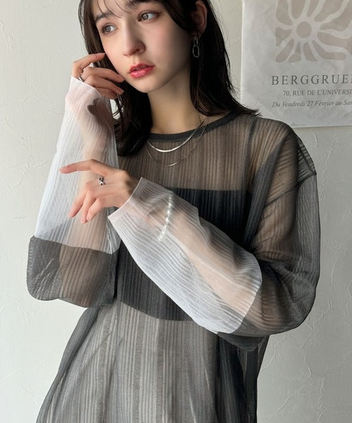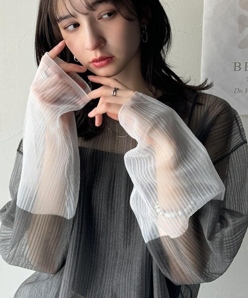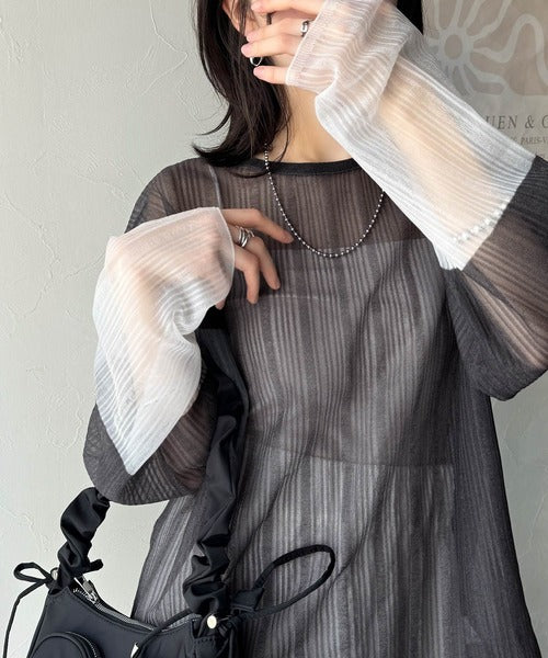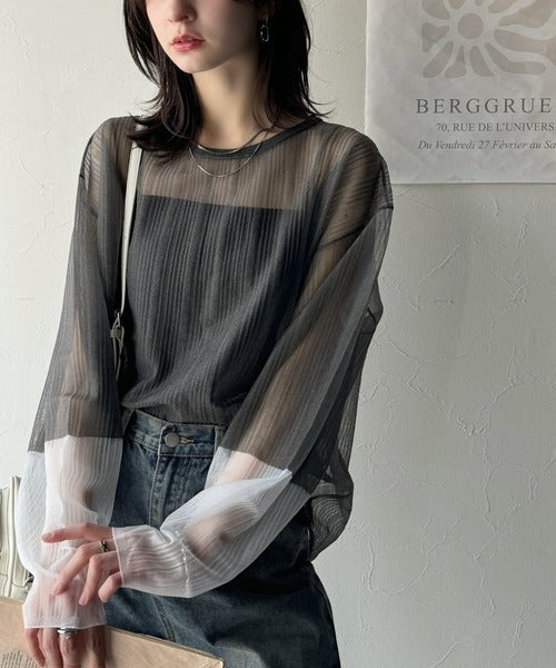 シャリ感素材で魅せる。袖シアー配色シャリシャリ素材サマーニット(長袖) ce1050291