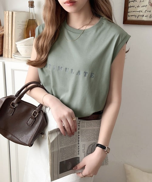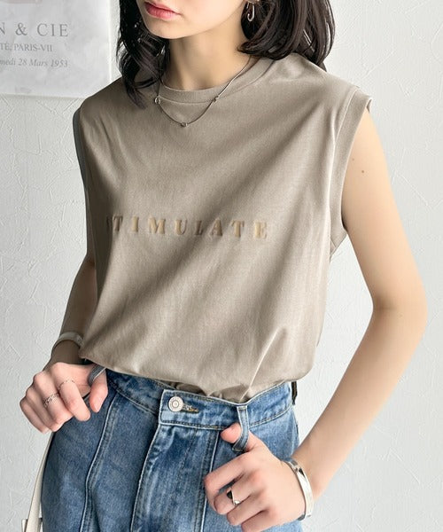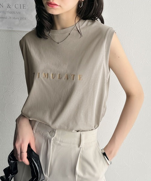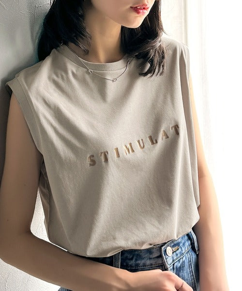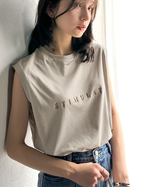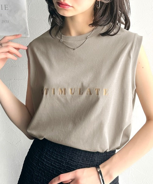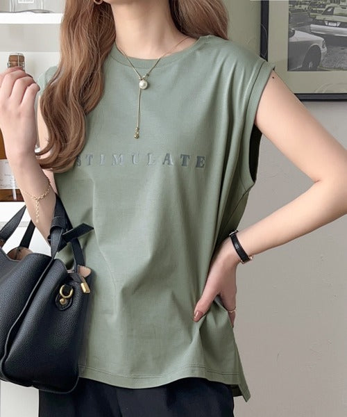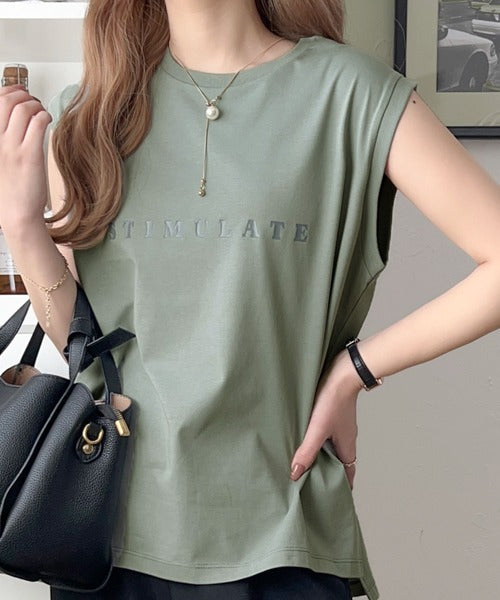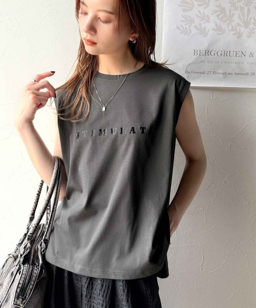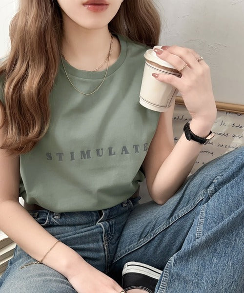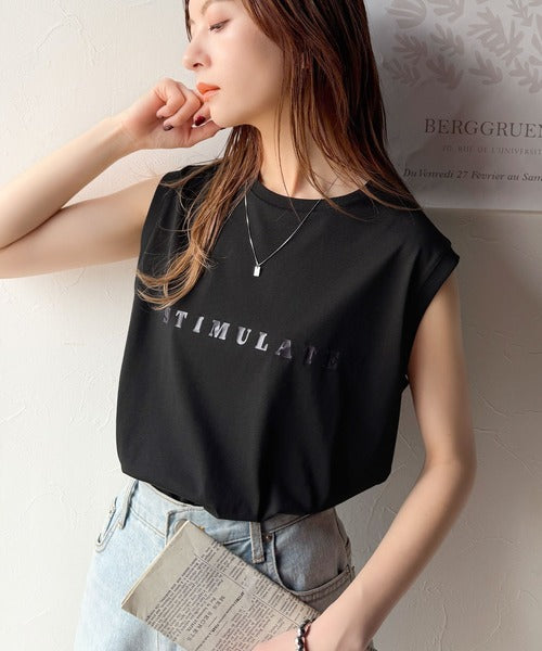 夏コーデの即戦力!接触冷感レターロゴプリント上品見えノースリーブカットソー ce1050295
