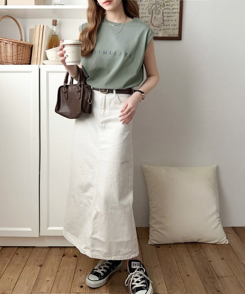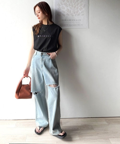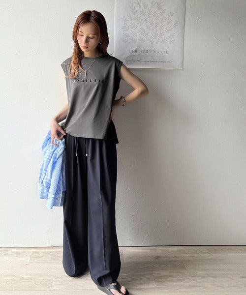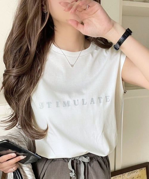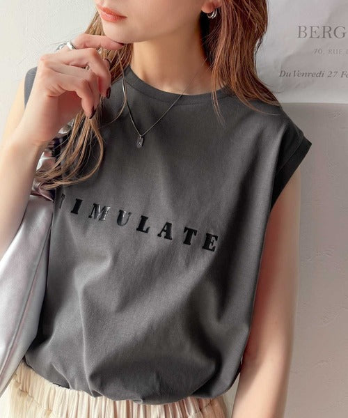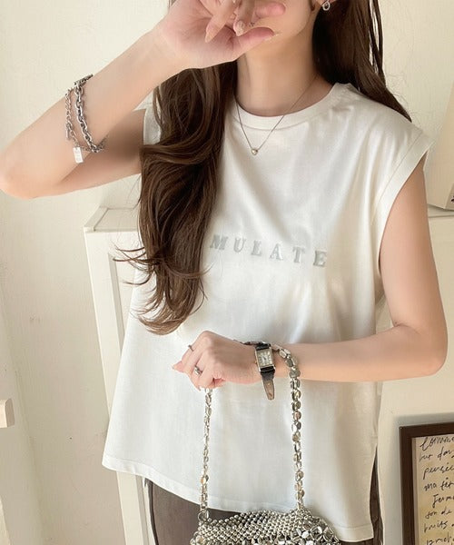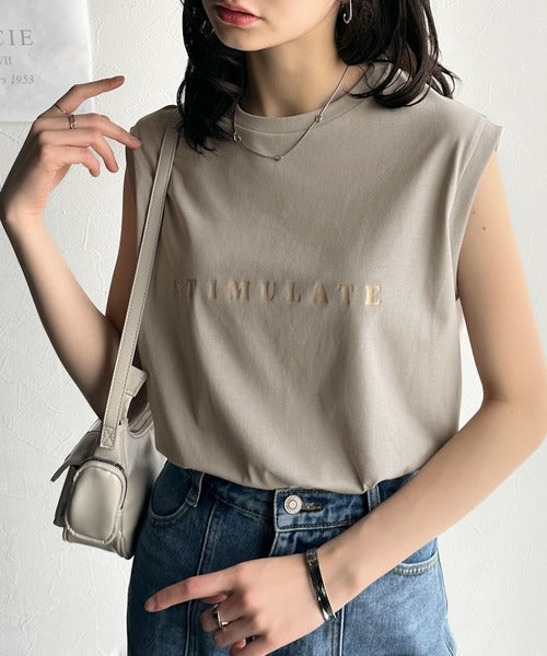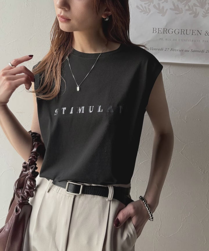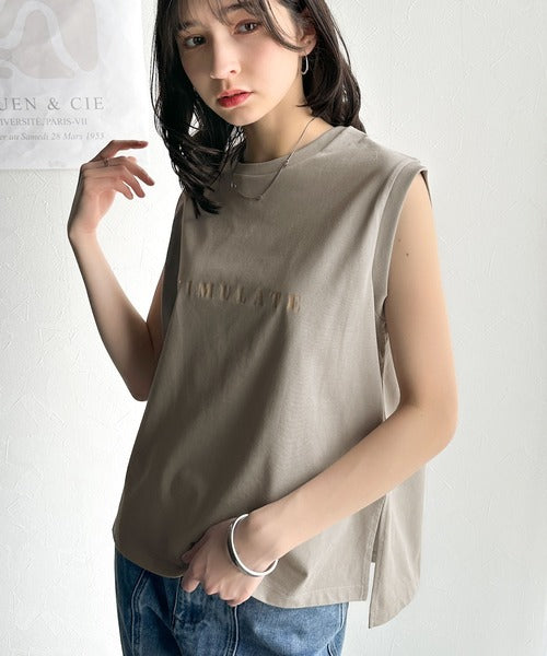 夏コーデの即戦力!接触冷感レターロゴプリント上品見えノースリーブカットソー ce1050295
