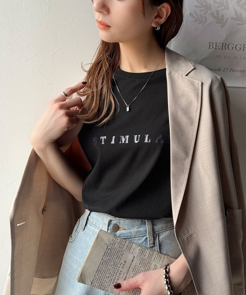 程よいハリ感で上品な印象を演出し、さりげないロゴプリントがアクセントに。