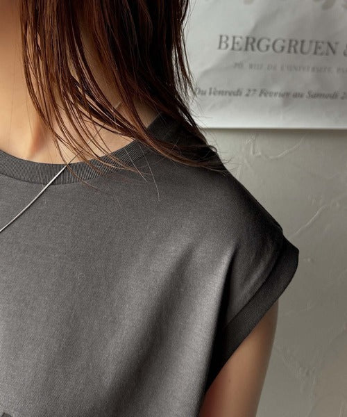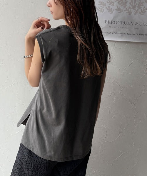 上品な質感とシルエットが魅力のノースリーブカットソー。