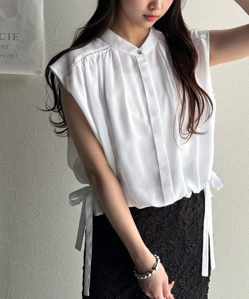 清楚感に大人の甘さをプラス。リボンヘムクロップドギャザーブラウス(ショート丈) ce1070134
