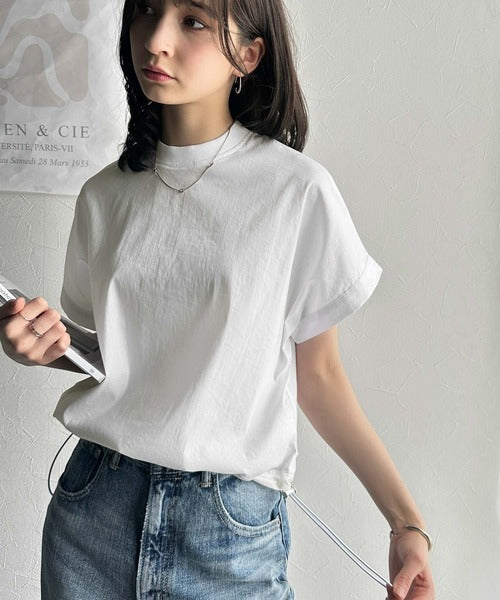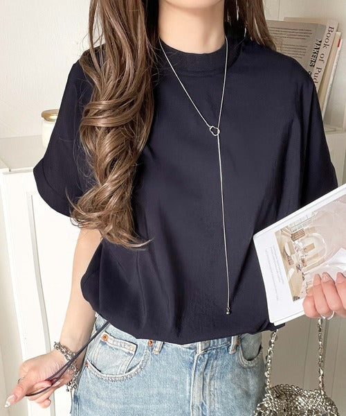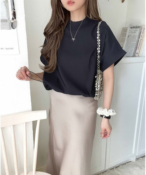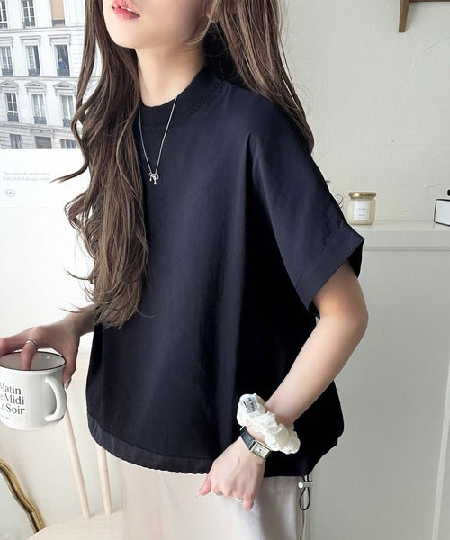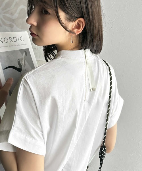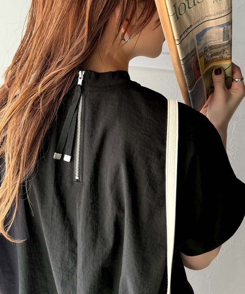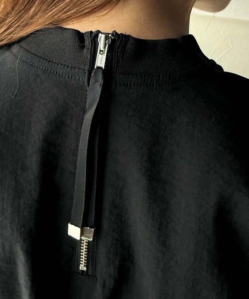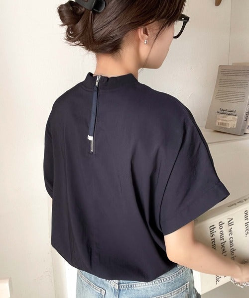 ブラウス素材で、衿はZIPで着脱可能なモックネック◎