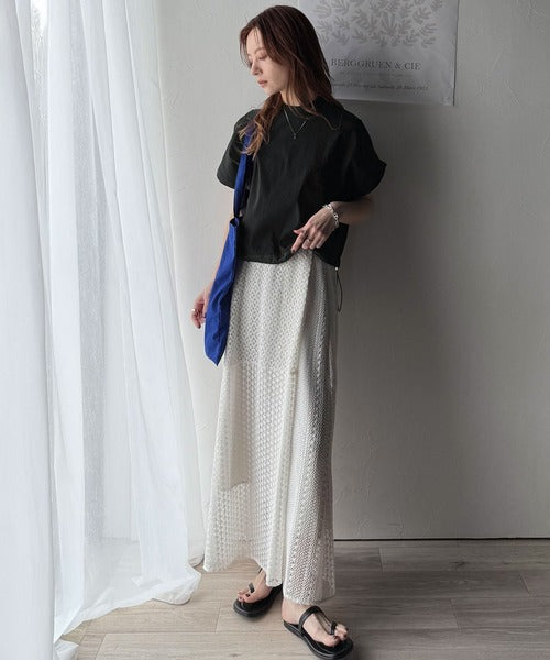 クロップド丈とドロスとデザインがアクセント。