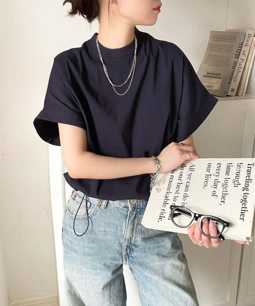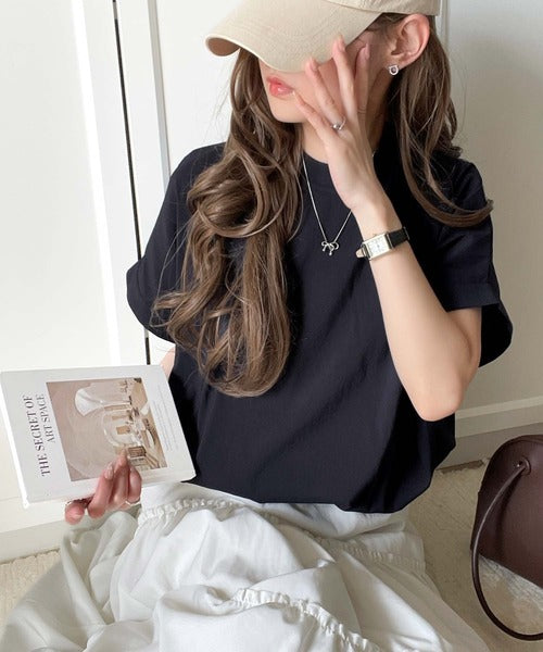 トレンドのクロップド丈のTシャツブラウス。