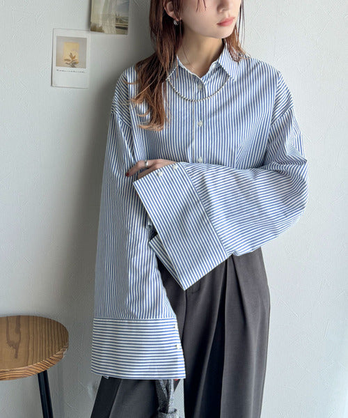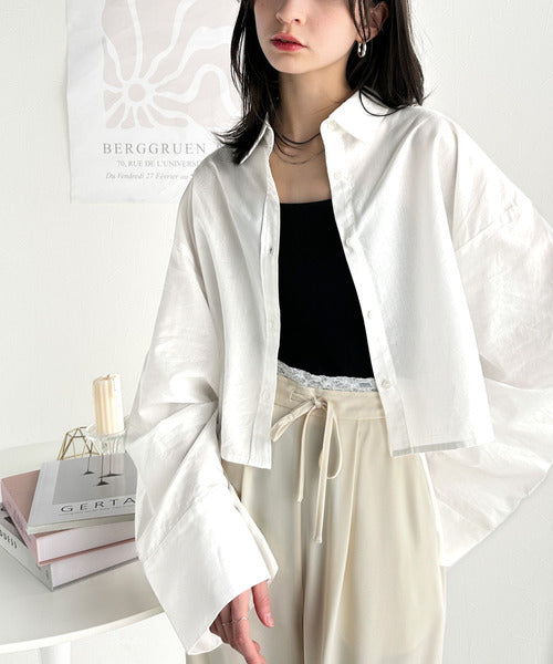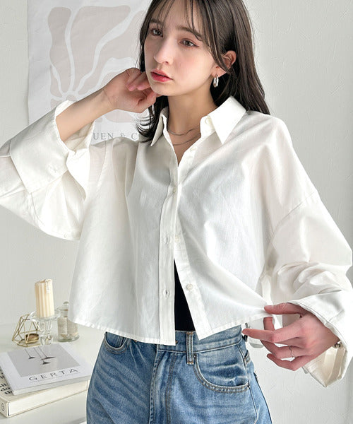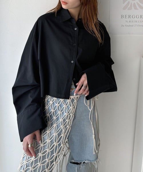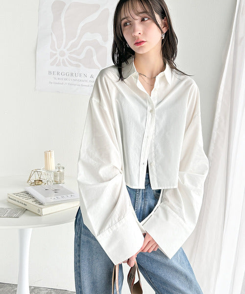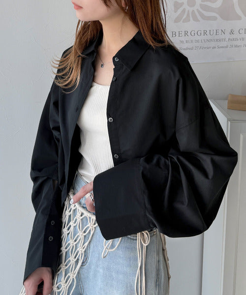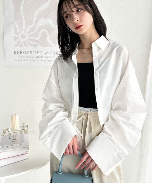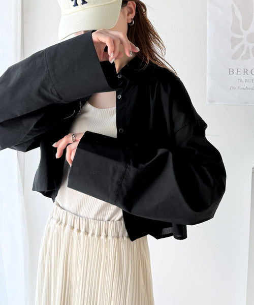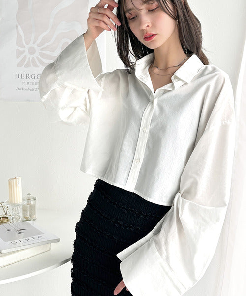 絶妙なバランスで着映え!マルチwayショート丈ロングワイドスリーブシャツ(ロールアップ可能) ce1070161