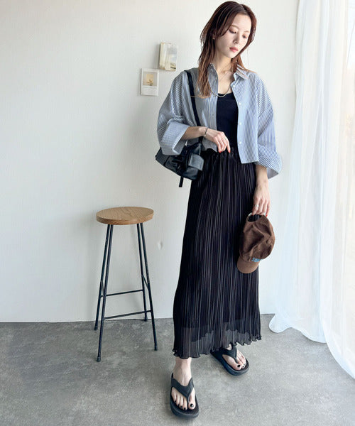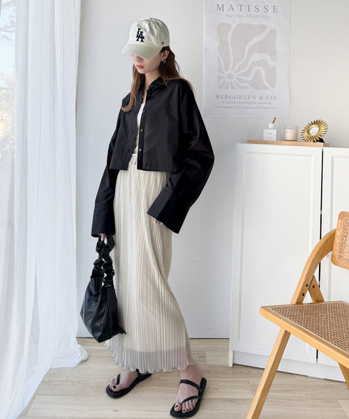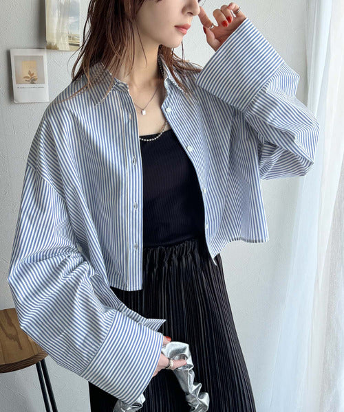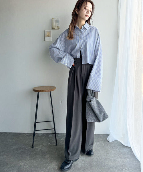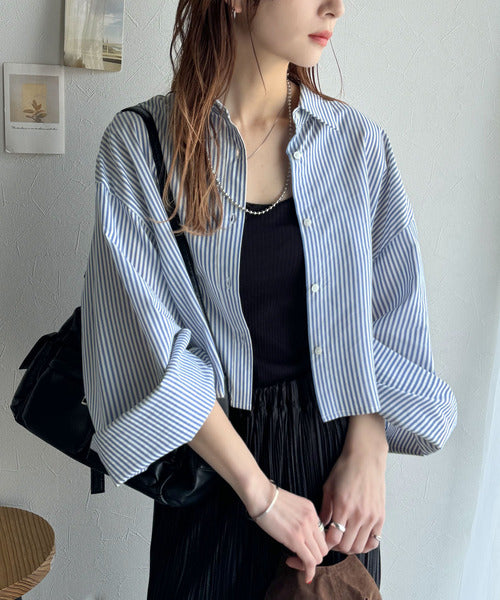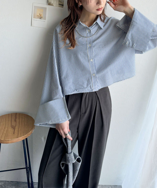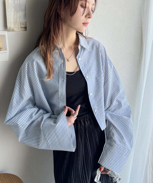 シーズンを問わず楽しめるロングワイドスリーブのショート丈ドシャツ!