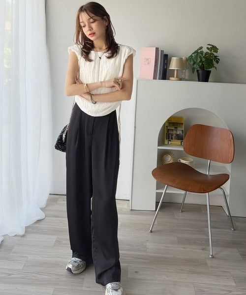 きれいめスラックスで大人っぽく、