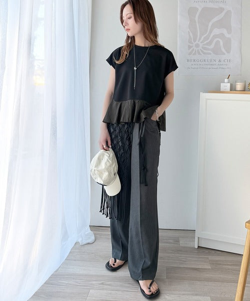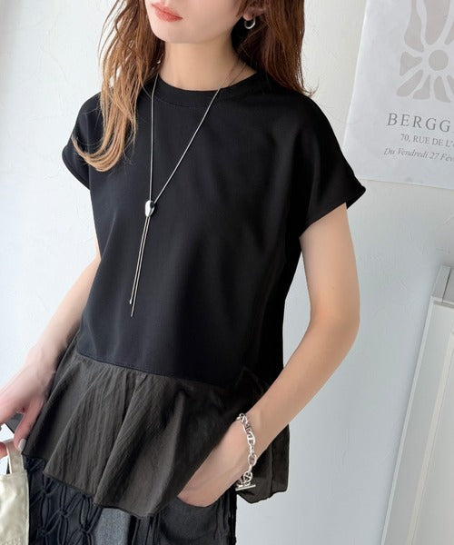 ・カットソー素材×裾シアーナイロンの異素材mix