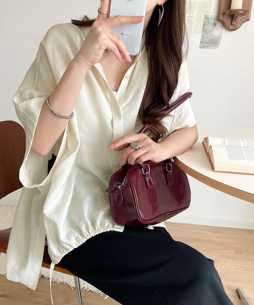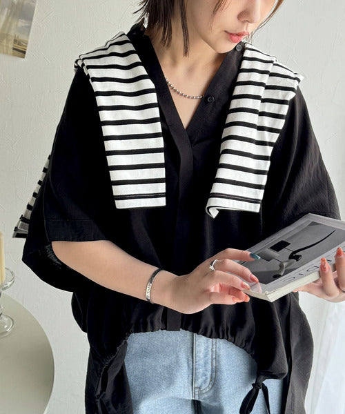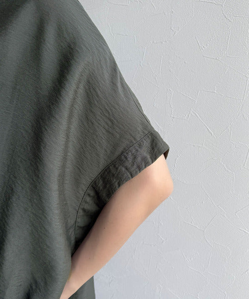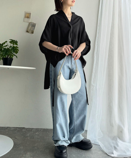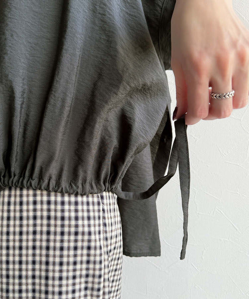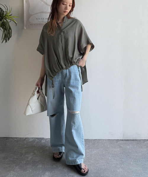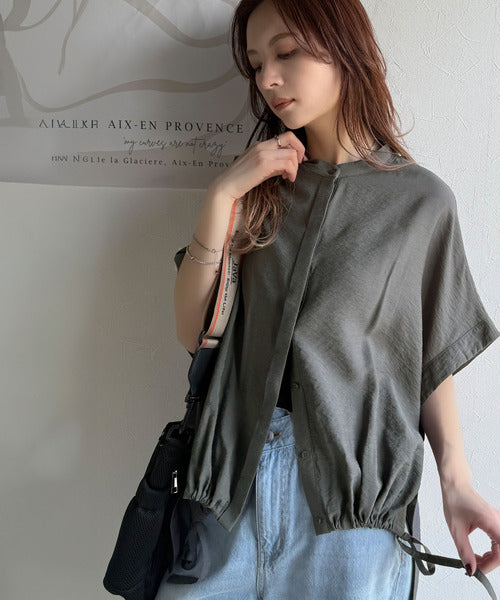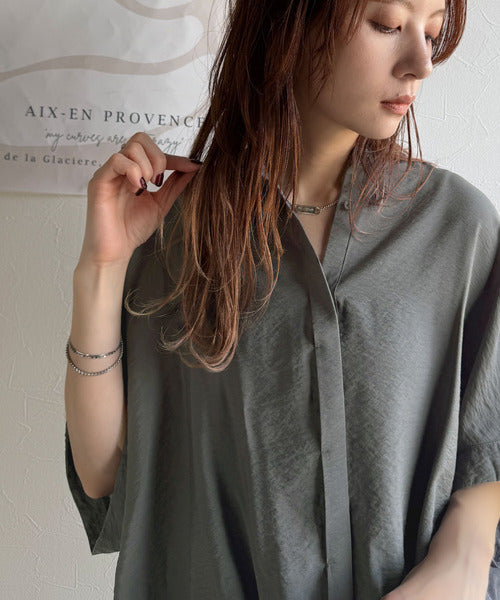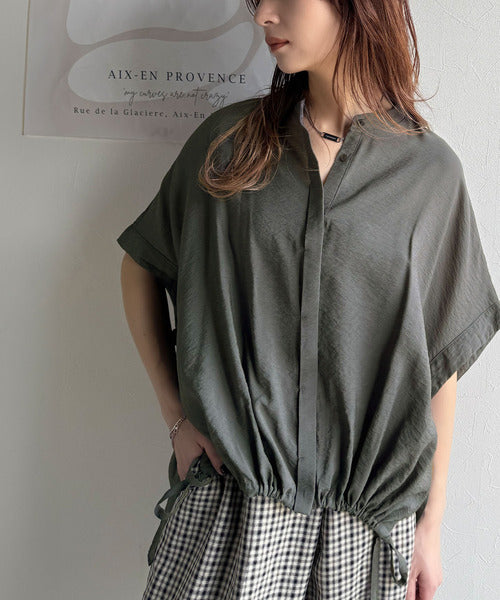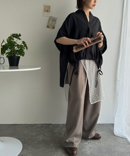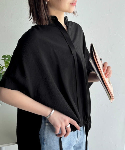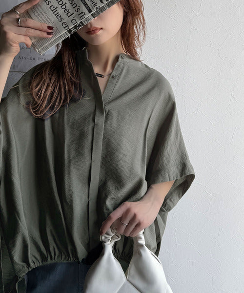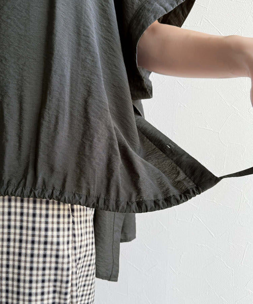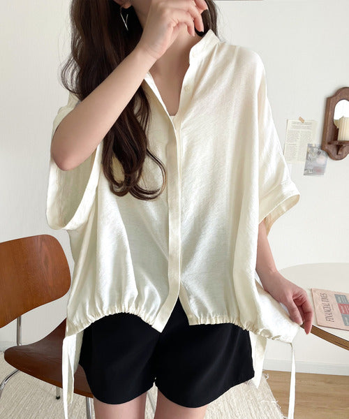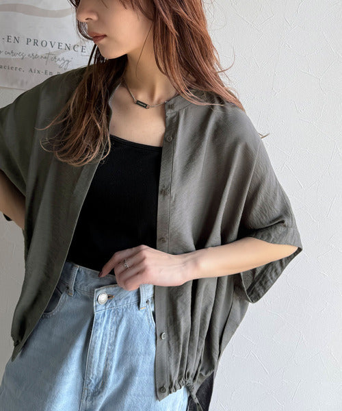 トレンド満載オーバーシルエット♪シボ感シアーサイドボタンスリット裾ドロストシャツ ce1110112
