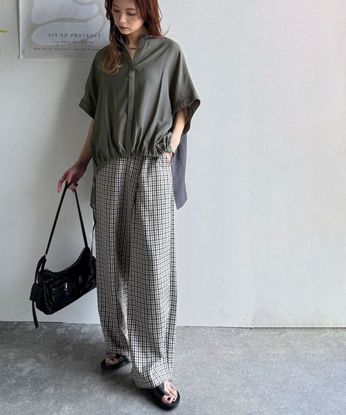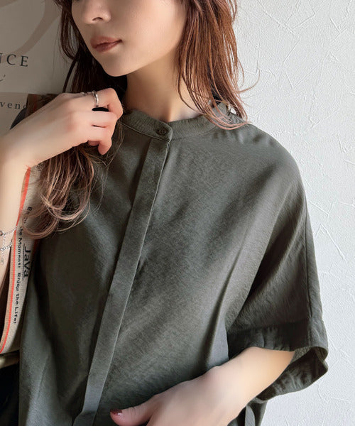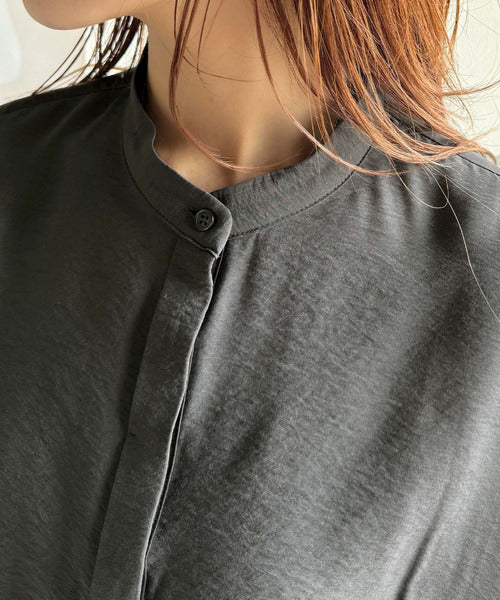また、顔周りがスッキリ見えるバンドカラーで品のある印象に。