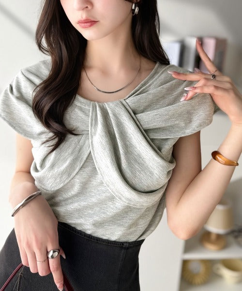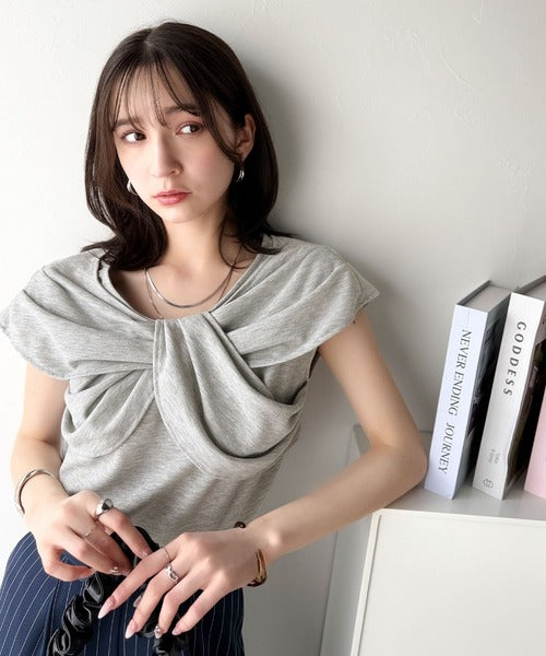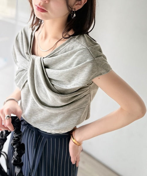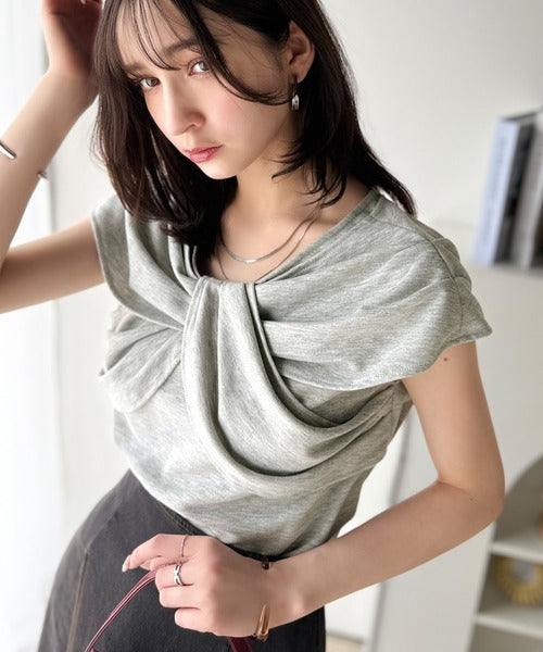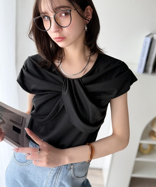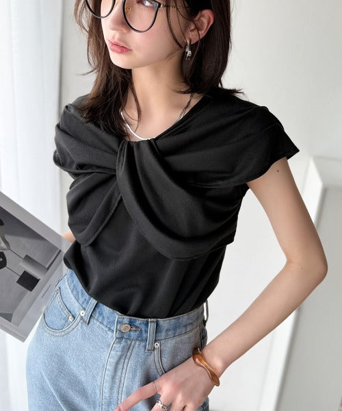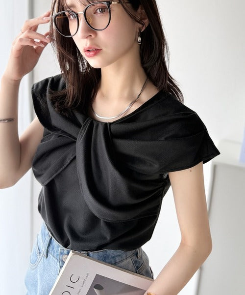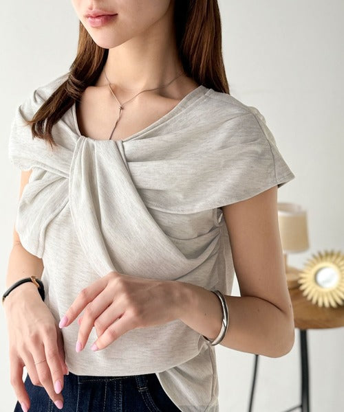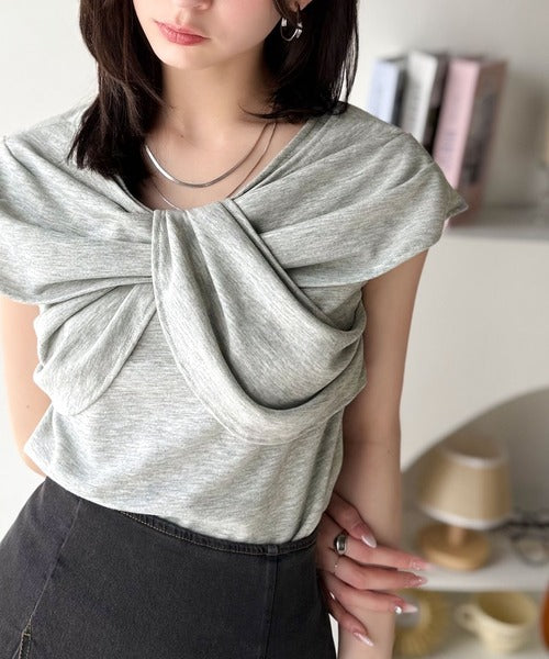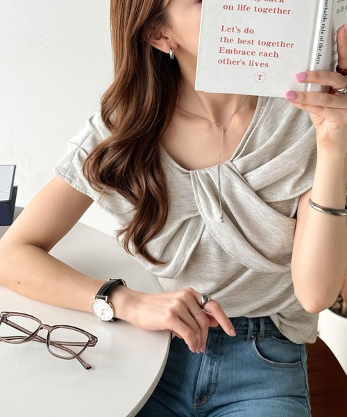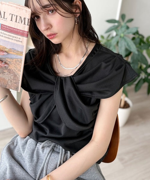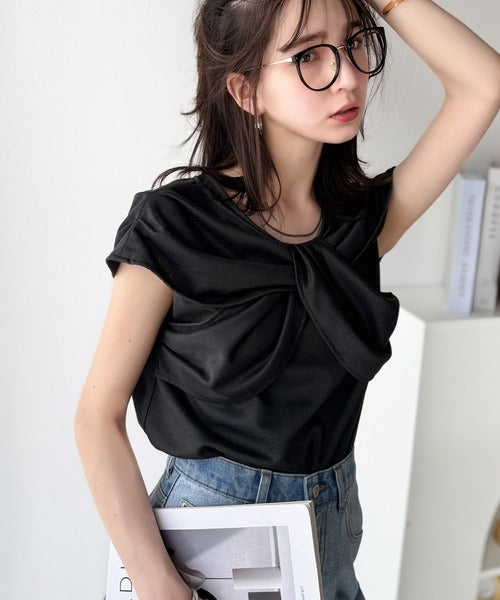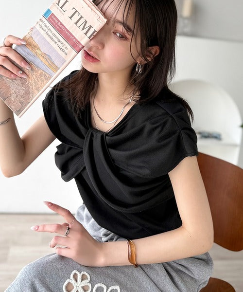 ”きれいめラフ”にこれ一択♪胸元ツイストリボンデザインTシャツ(半袖) ce1110121