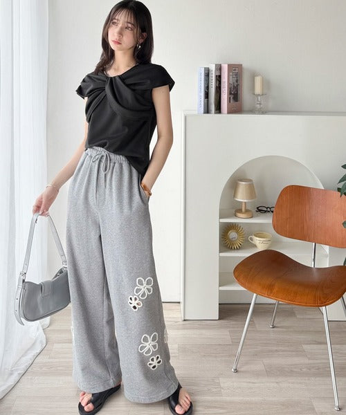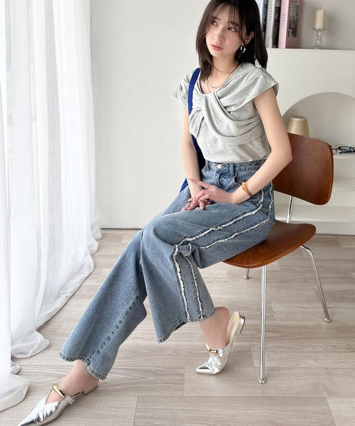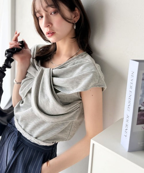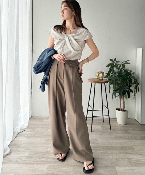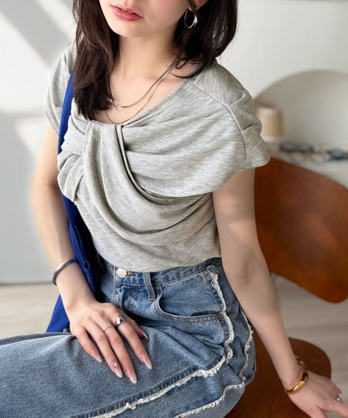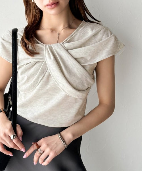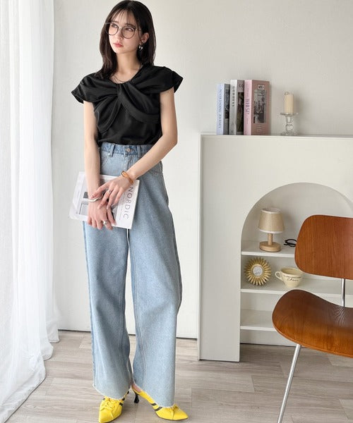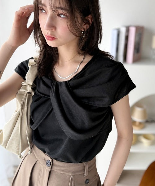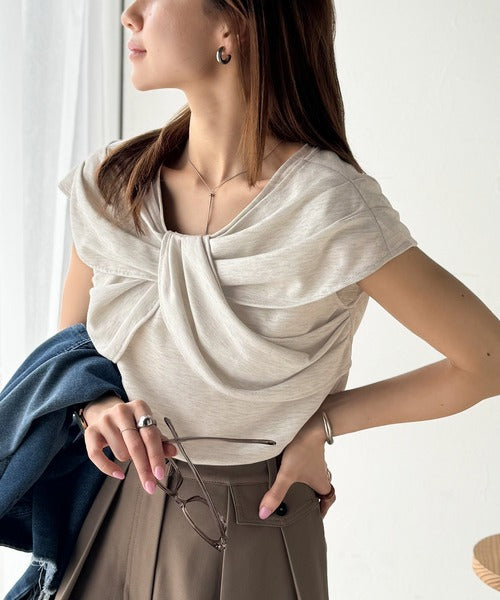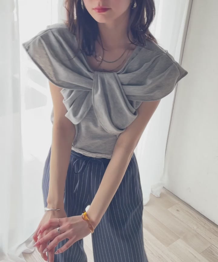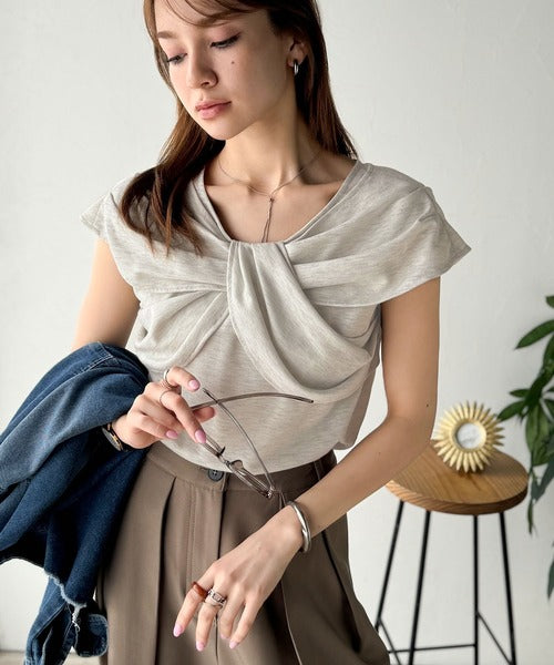 ”きれいめラフ”にこれ一択♪胸元ツイストリボンデザインTシャツ(半袖) ce1110121