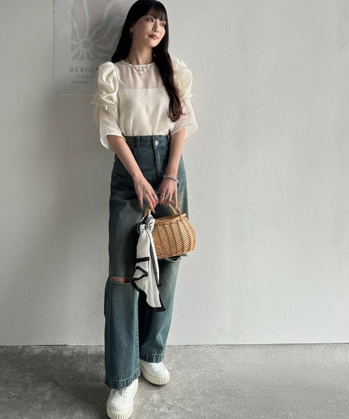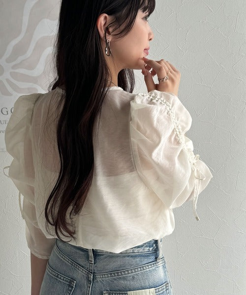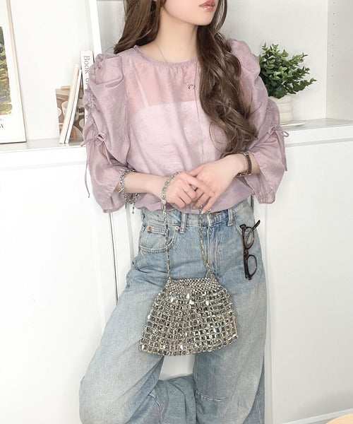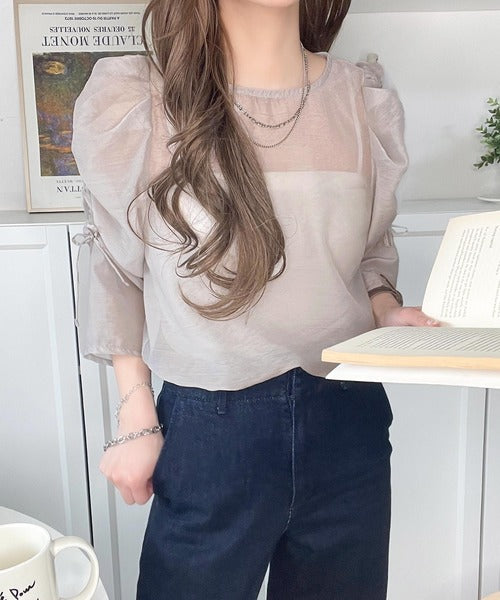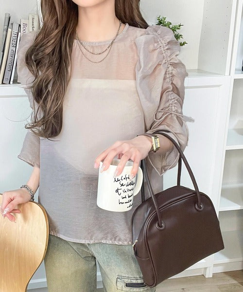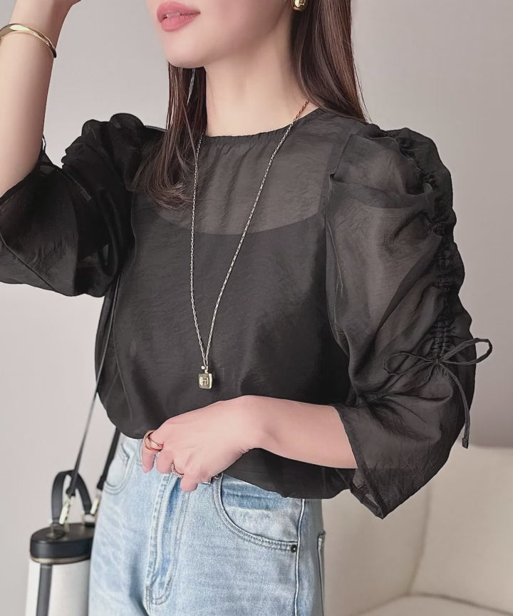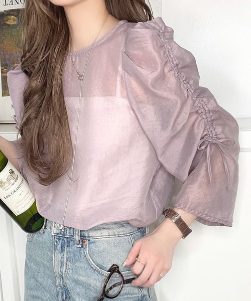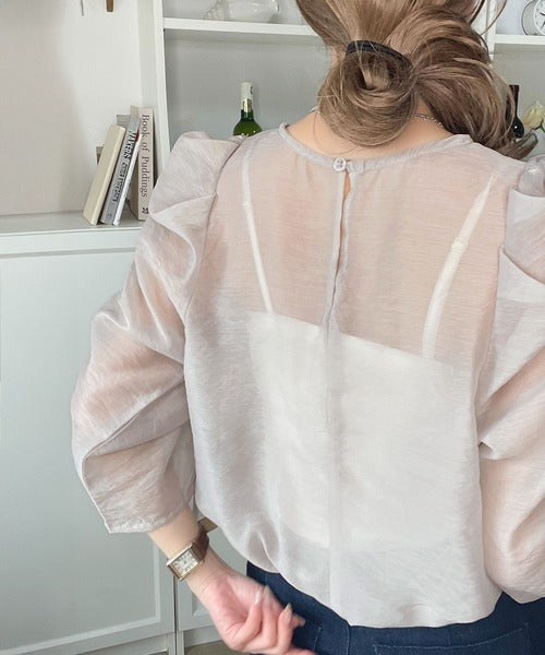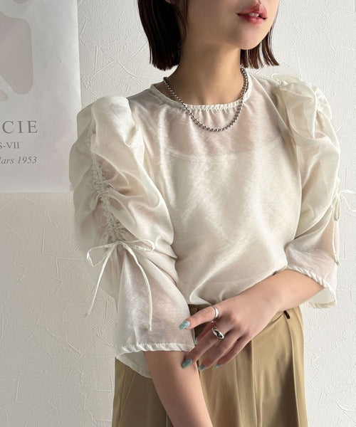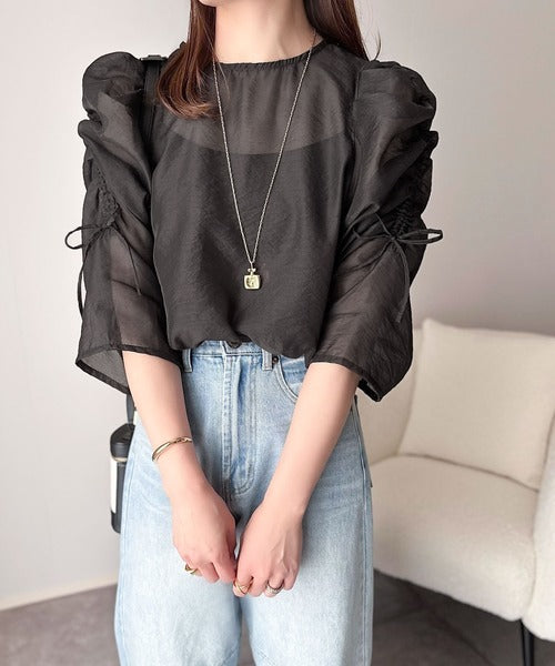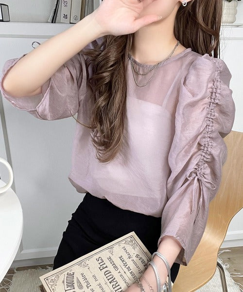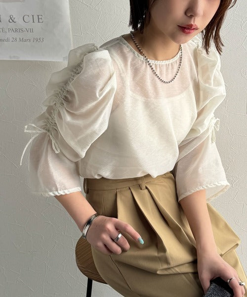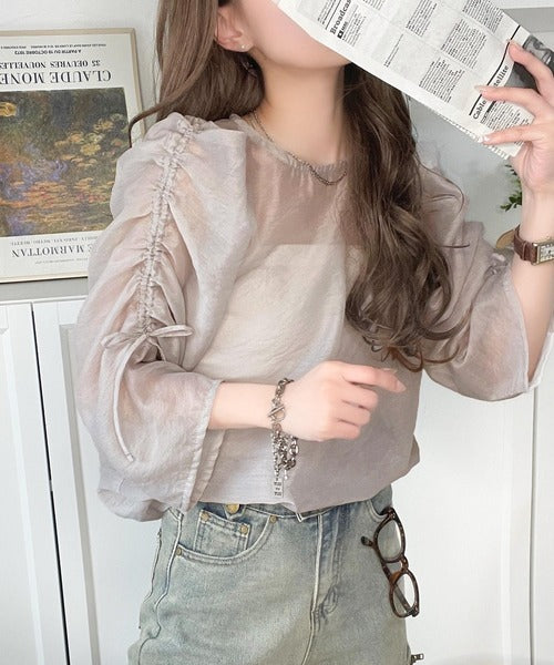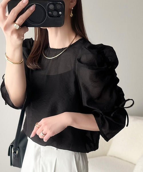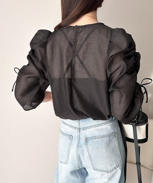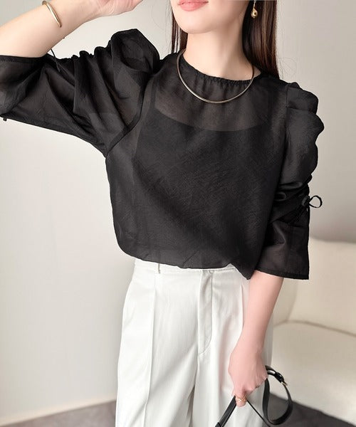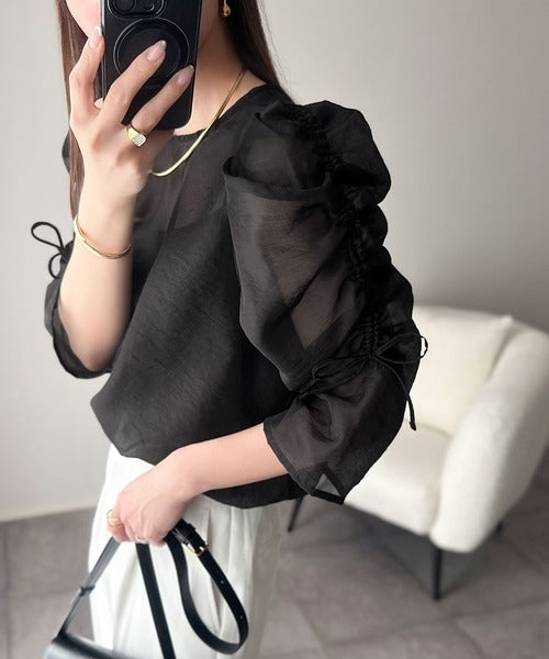 動きに合わせて表情を変えるオーガンジー素材が魅力のブラウス。