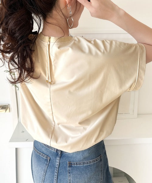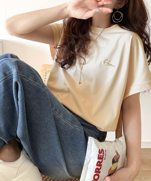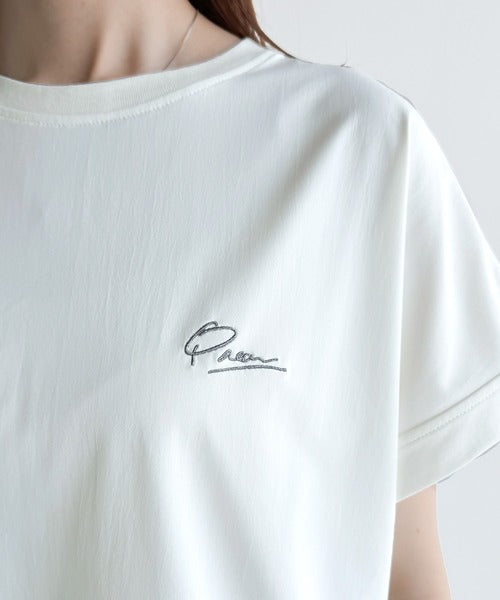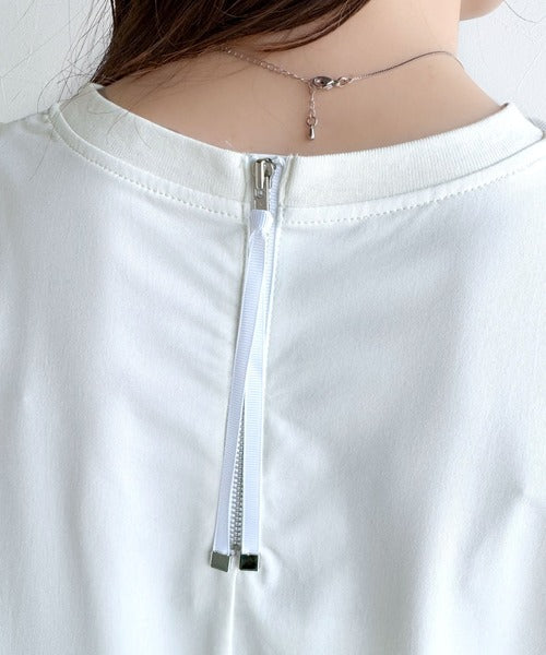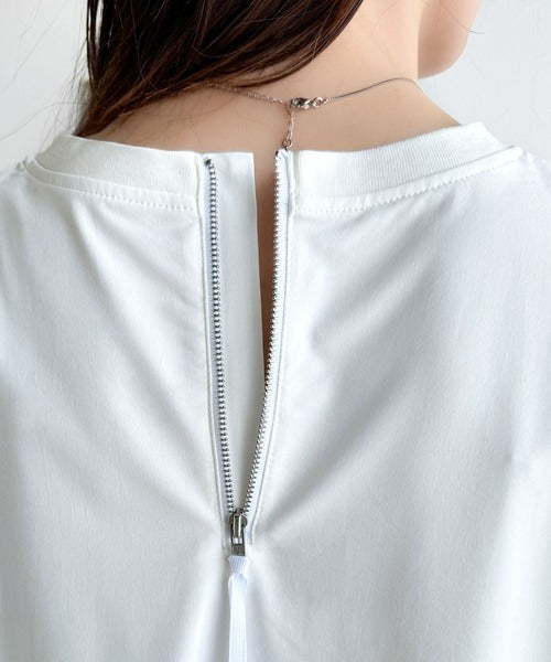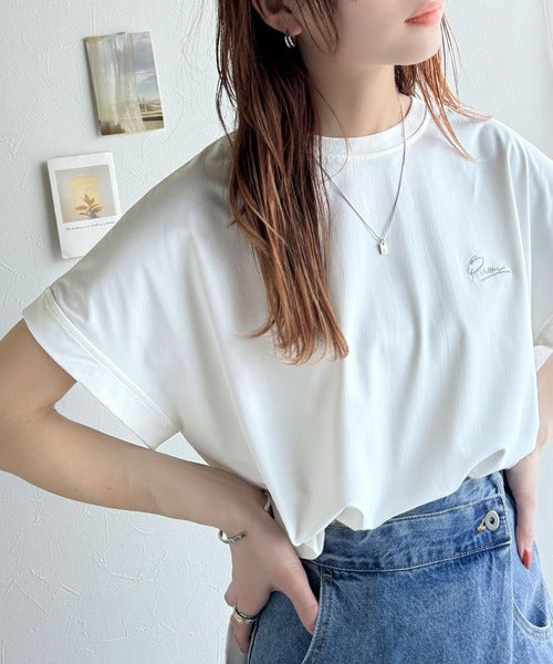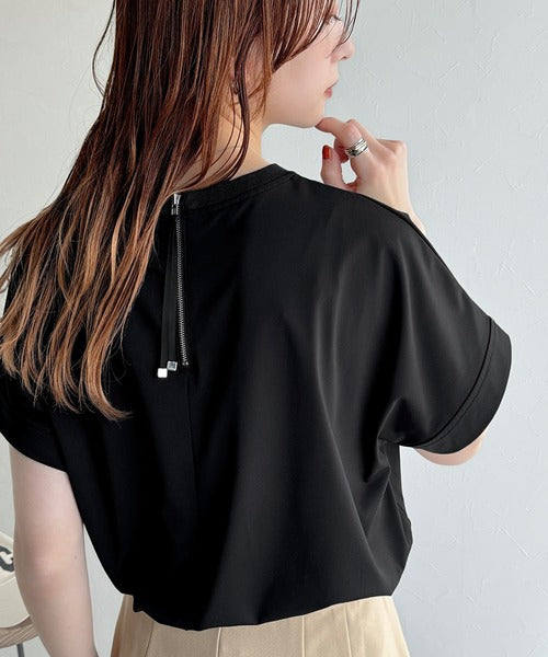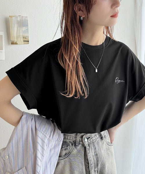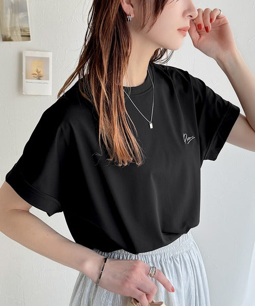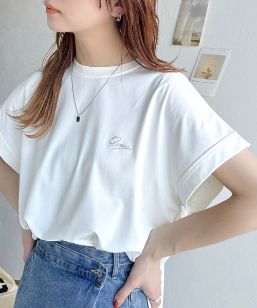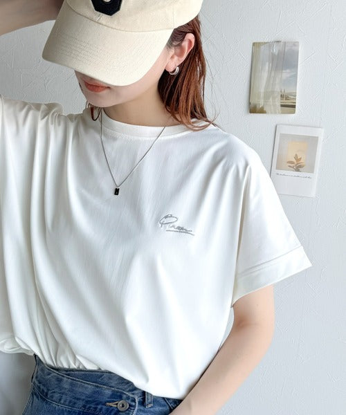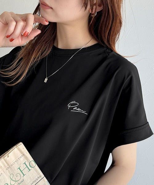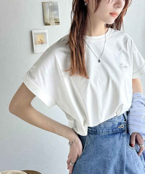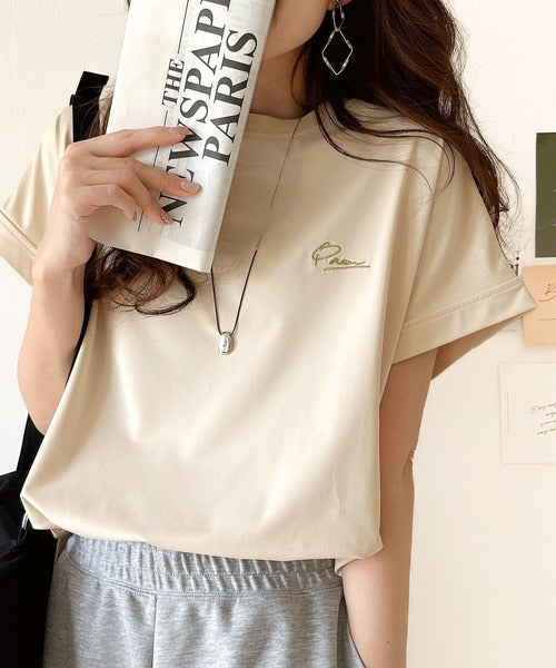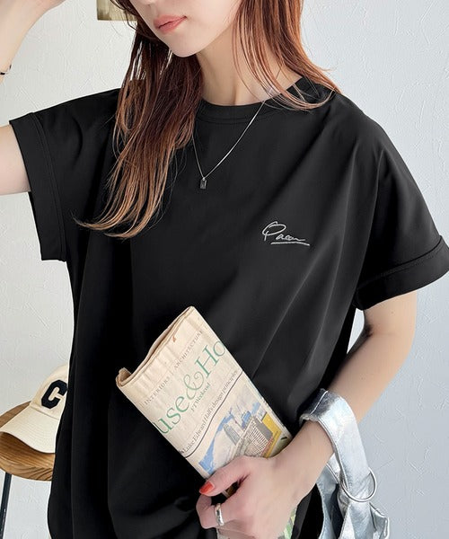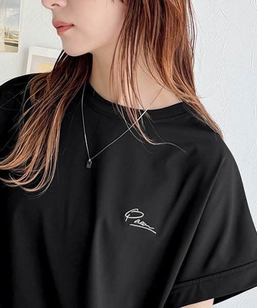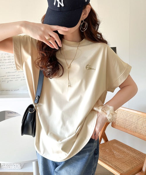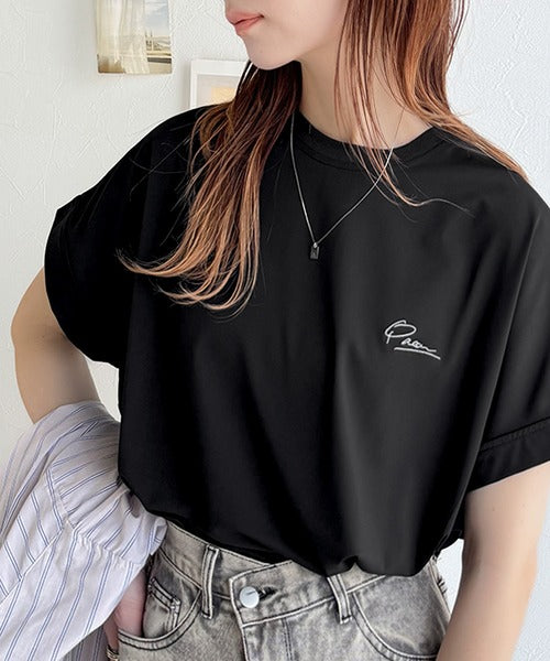 着るUV!ひんやりバックファスナードルマンスリーブ胸刺繍半袖トップス(接触冷感/UVカット/遮熱機能) ce1260389