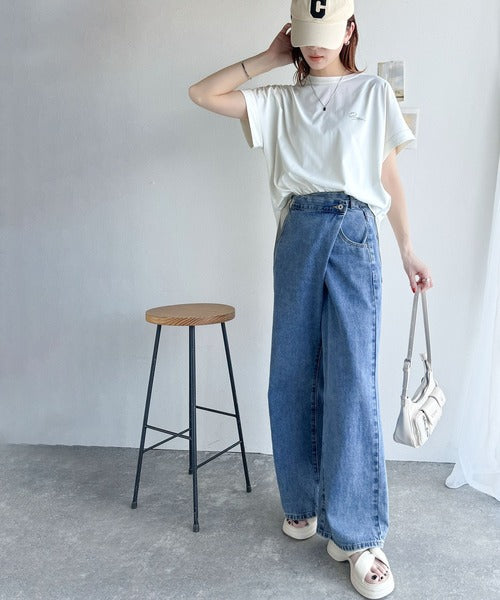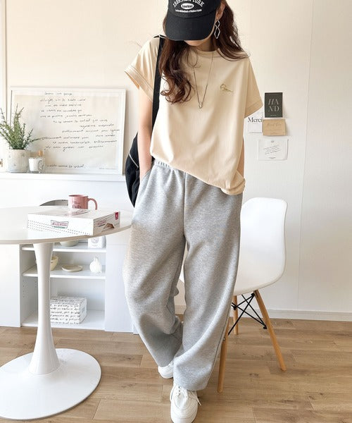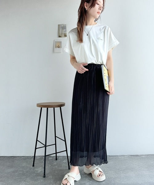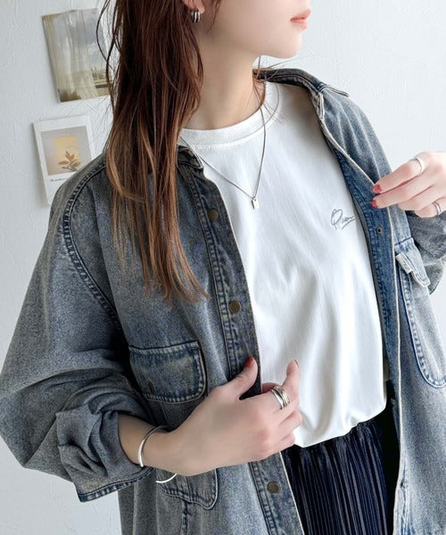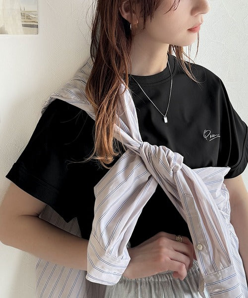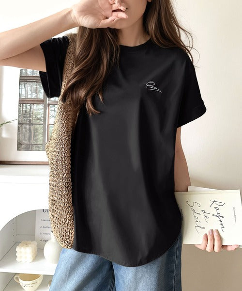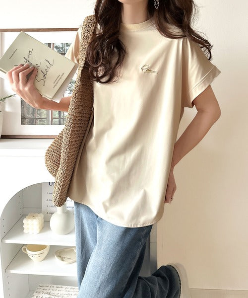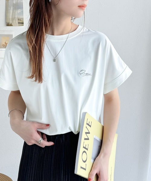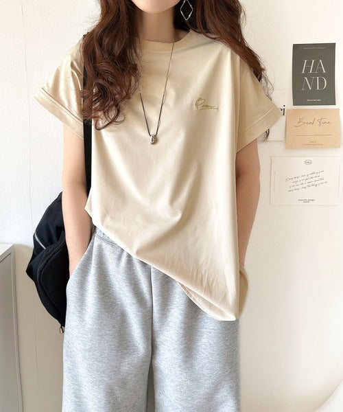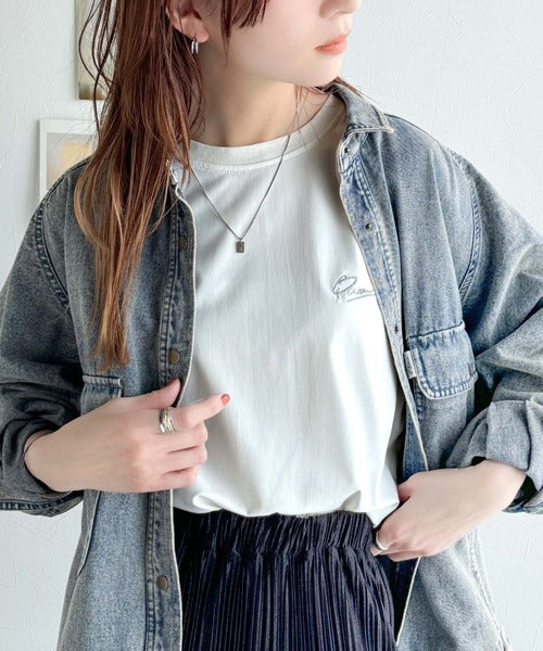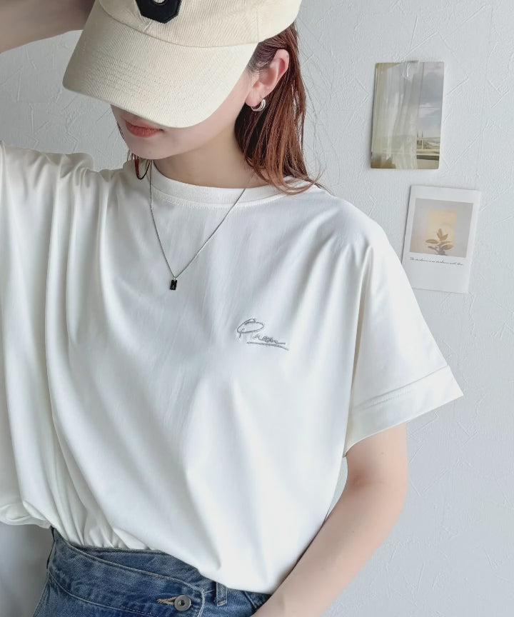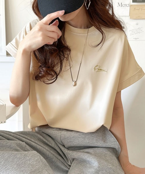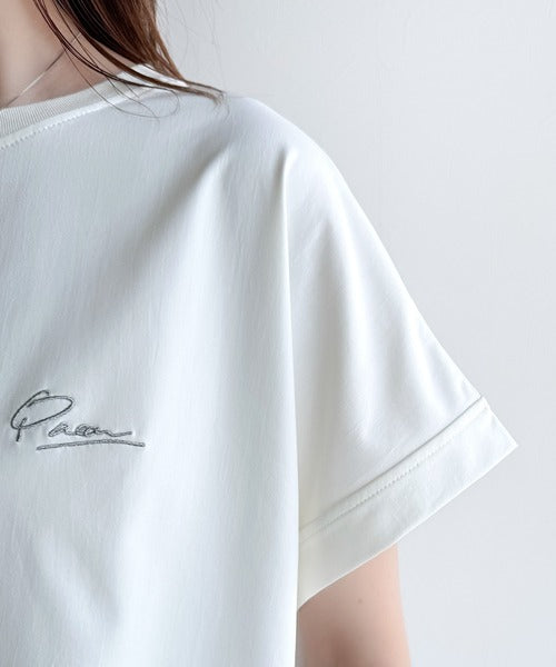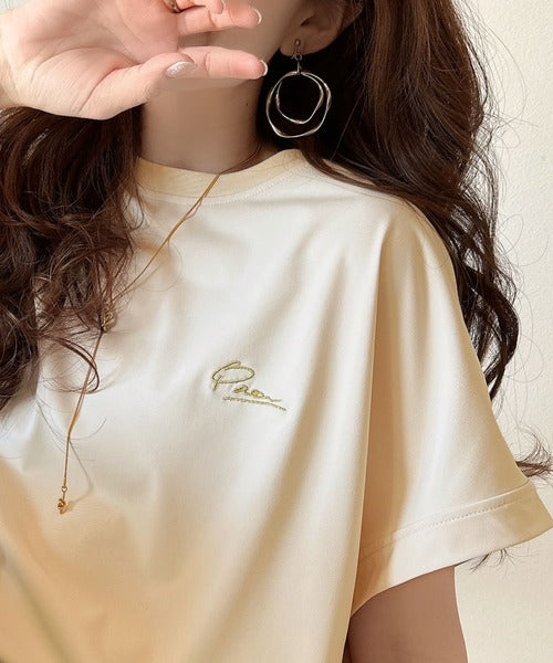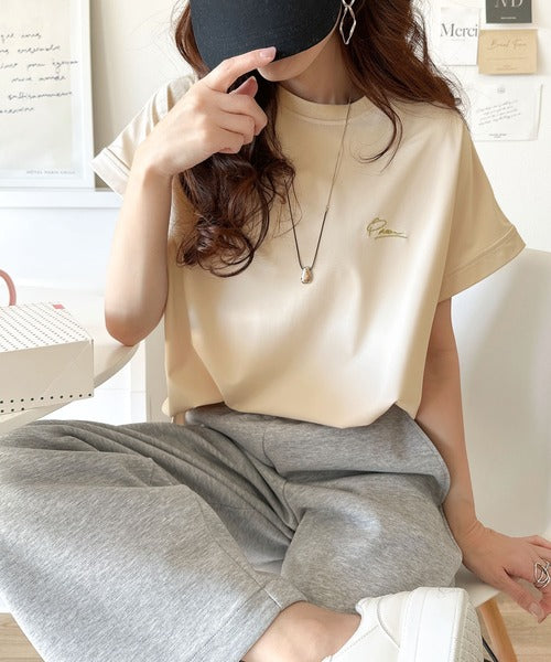 胸元の刺繍がさりげないアクセントとなり、シンプルなデザインに華やかさをプラス。