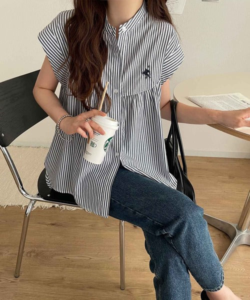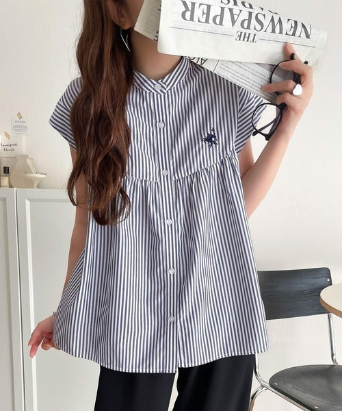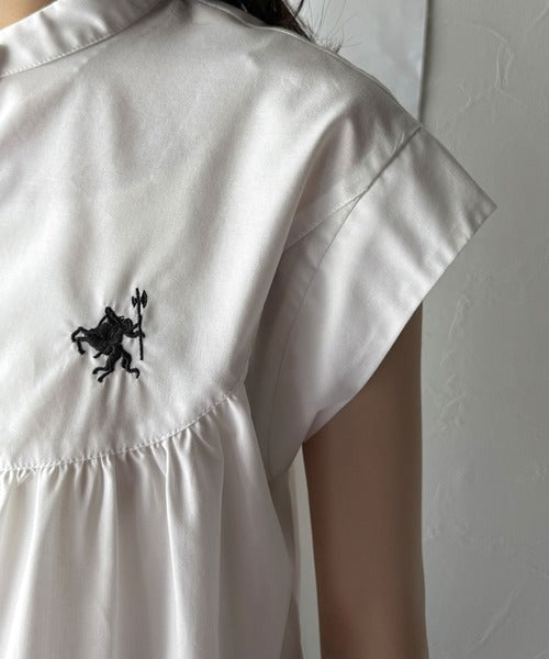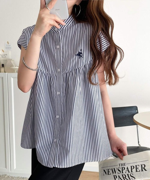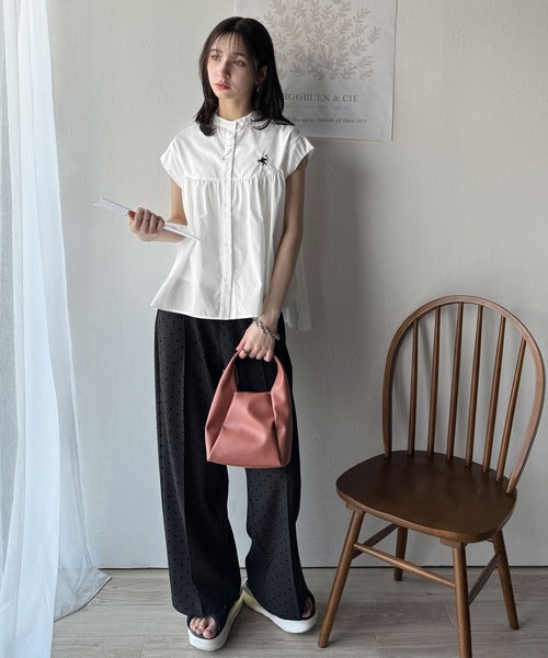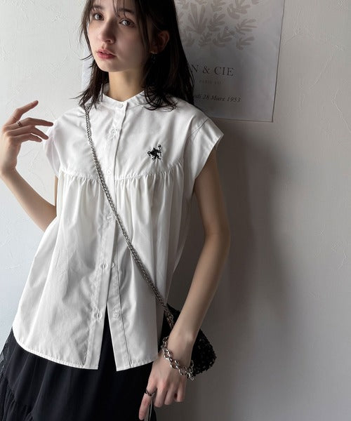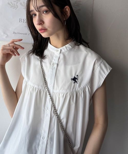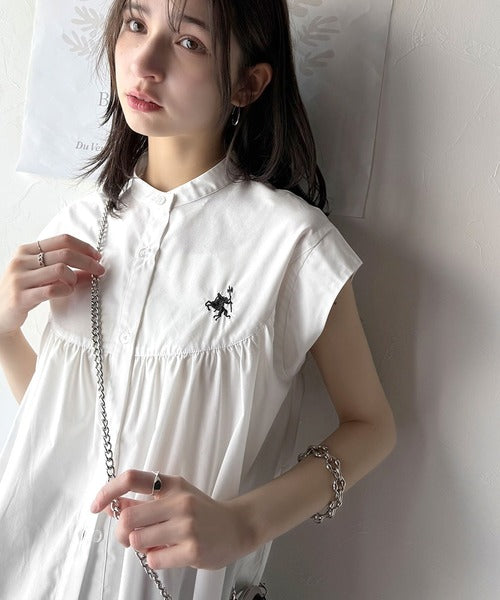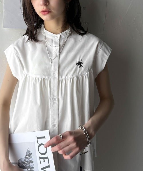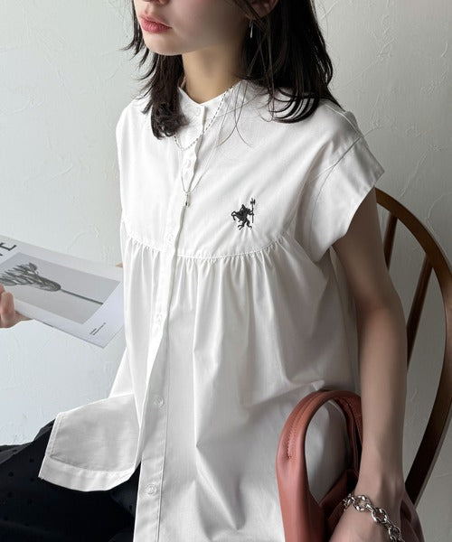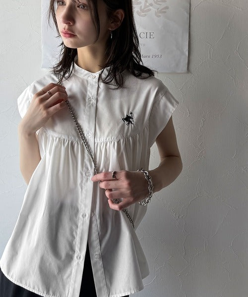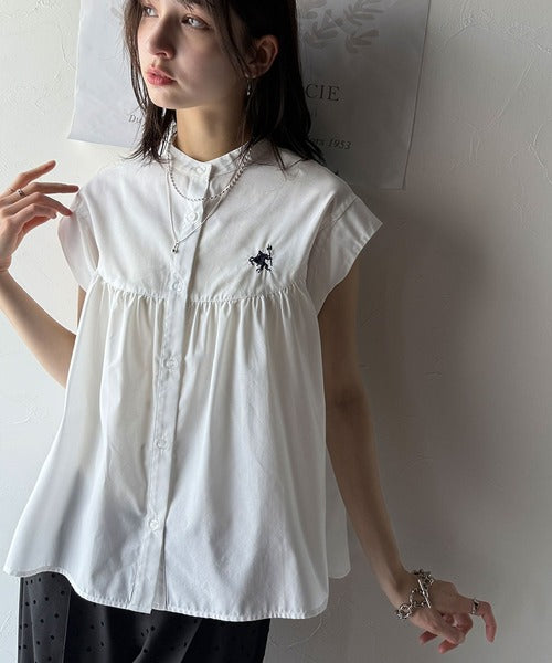 デイリーからお出かけまで大活躍。フレンチスリーブ胸刺繍ギャザーシャツ ce1265001