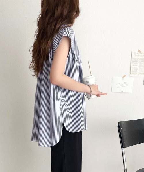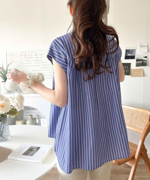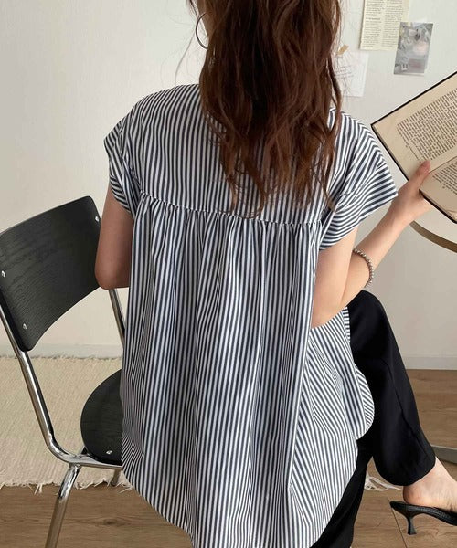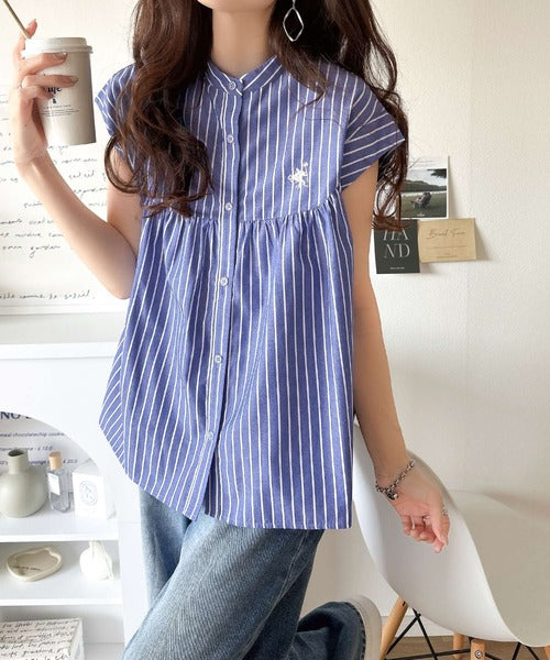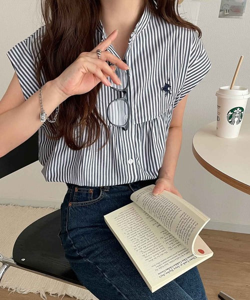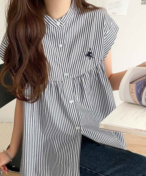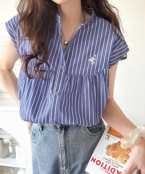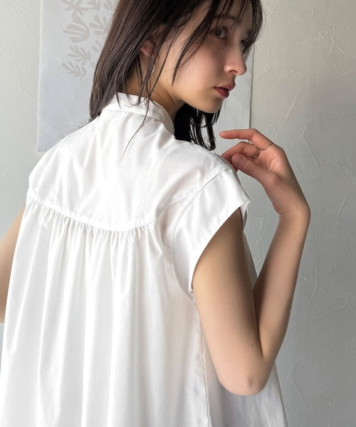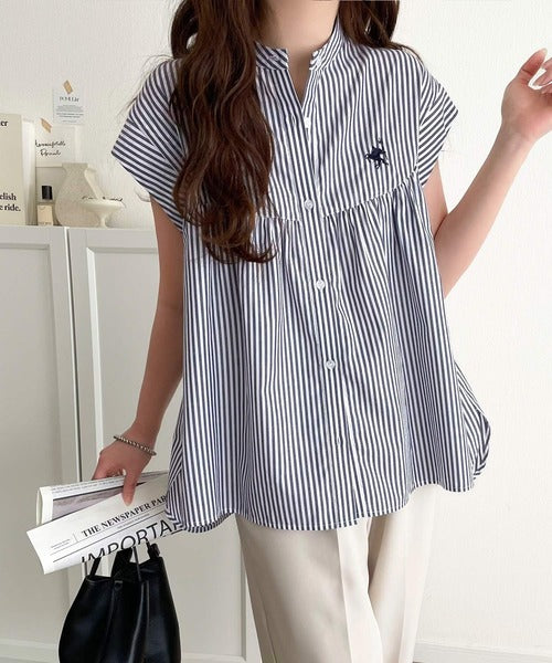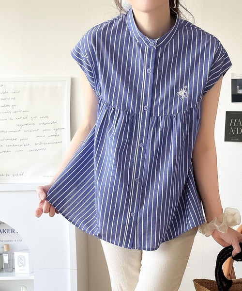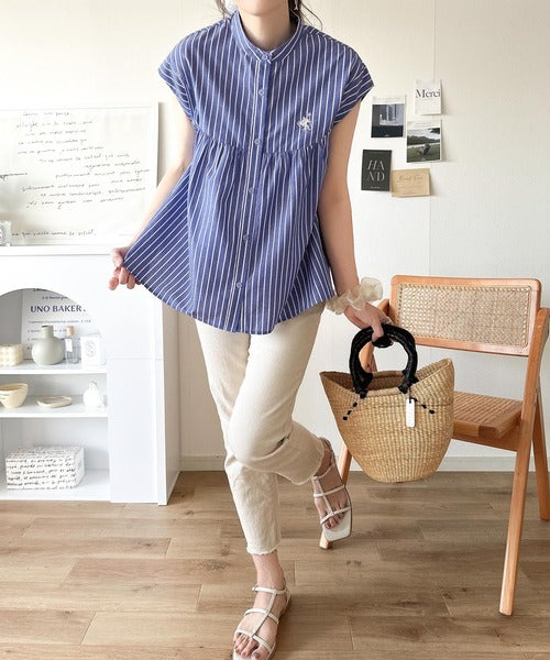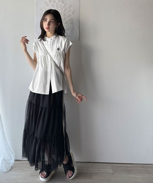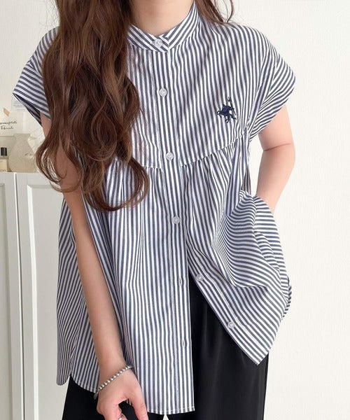 デイリーからお出かけまで大活躍。フレンチスリーブ胸刺繍ギャザーシャツ ce1265001