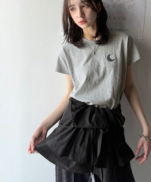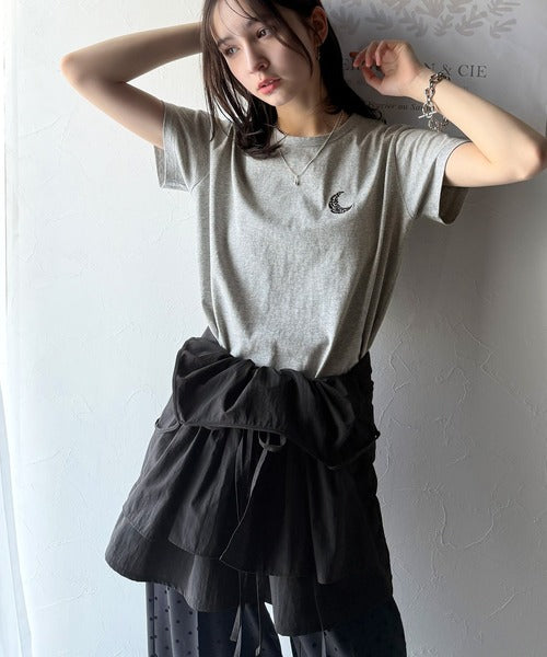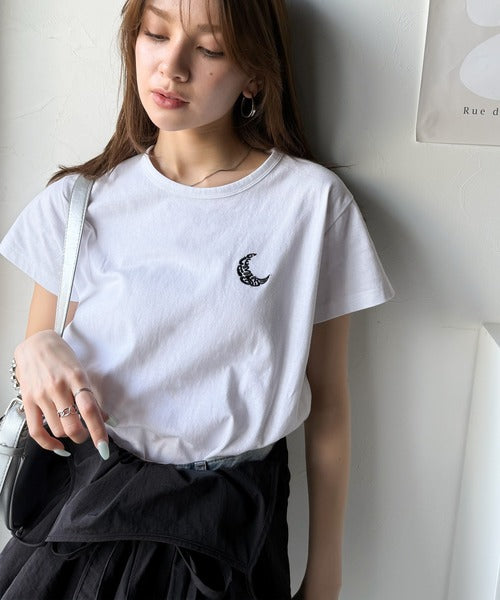 ・Tシャツには胸元ムーン刺繍でワンポイント
