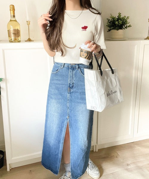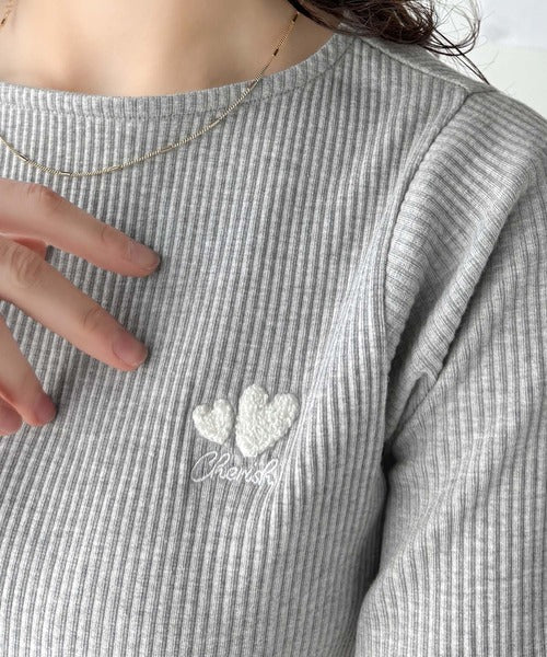 胸元のハート刺繍で、可愛さをさりげなくアピール。