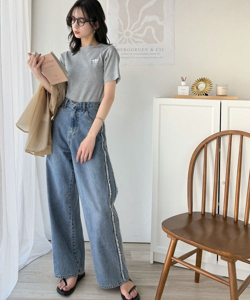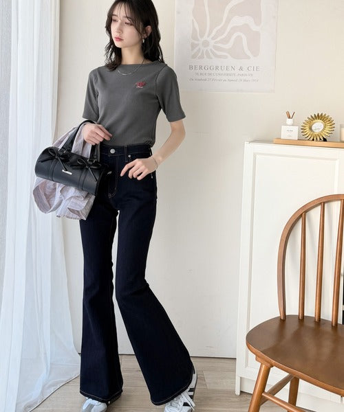 その日の気分に合わせてカーブデニムやフレアパンツを合わせてもOK◎