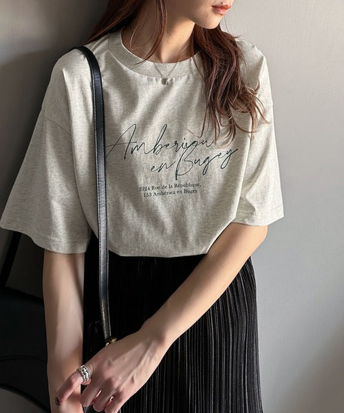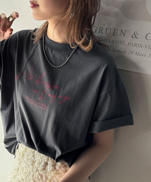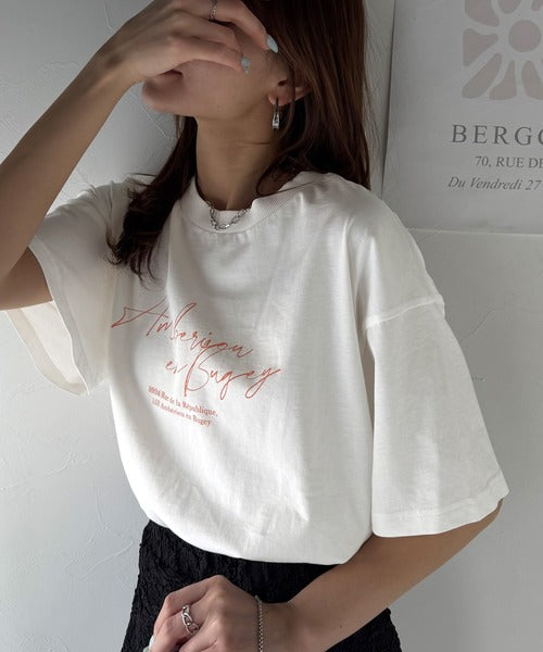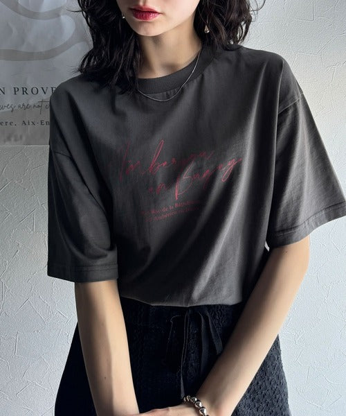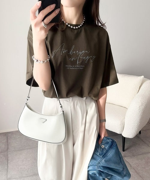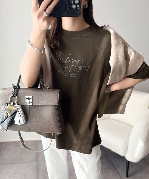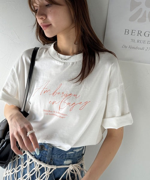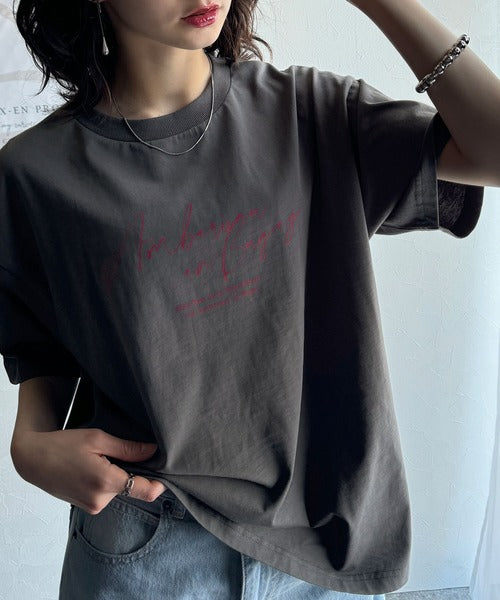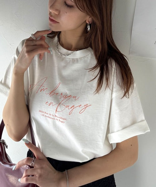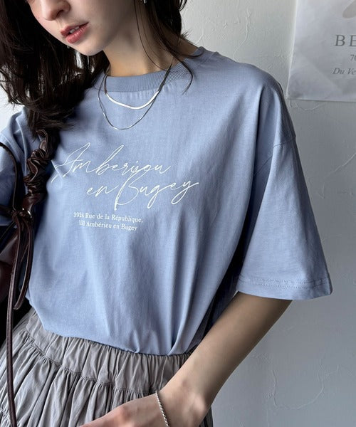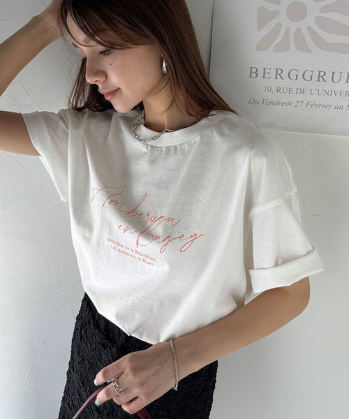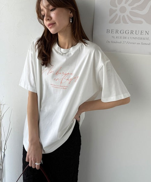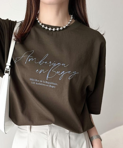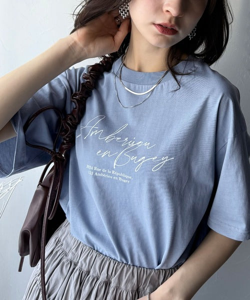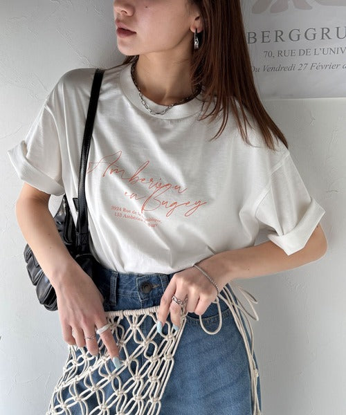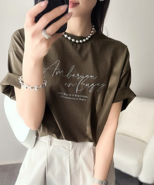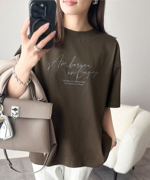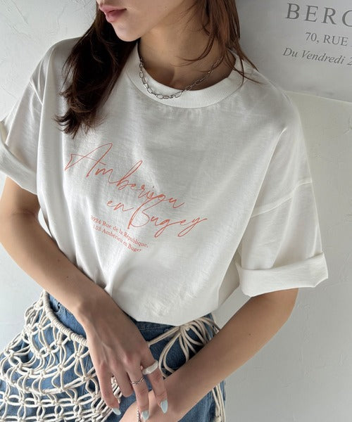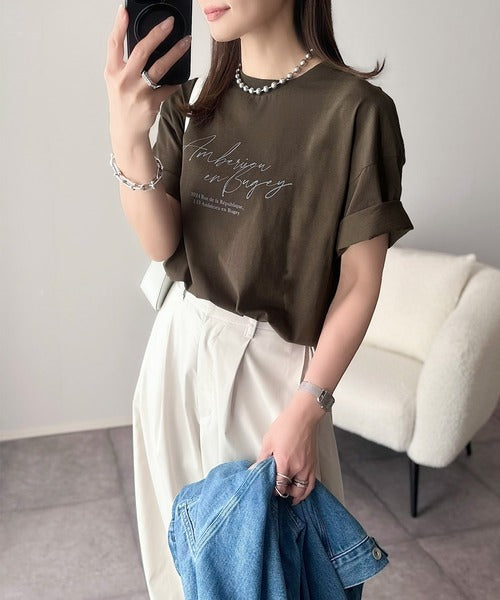 大人カジュアルに映える。綿100%胸元筆記体ロゴなめらかシルケット風Tシャツ(半袖) ce1330030