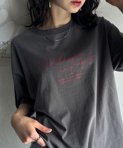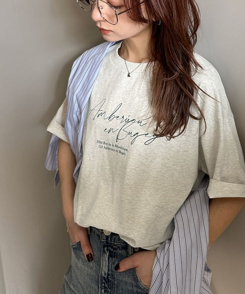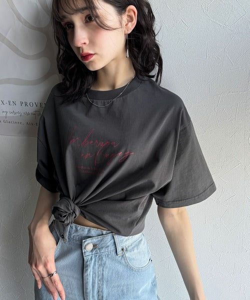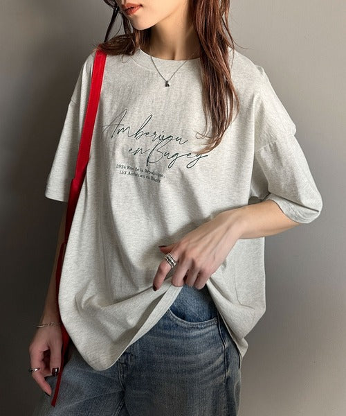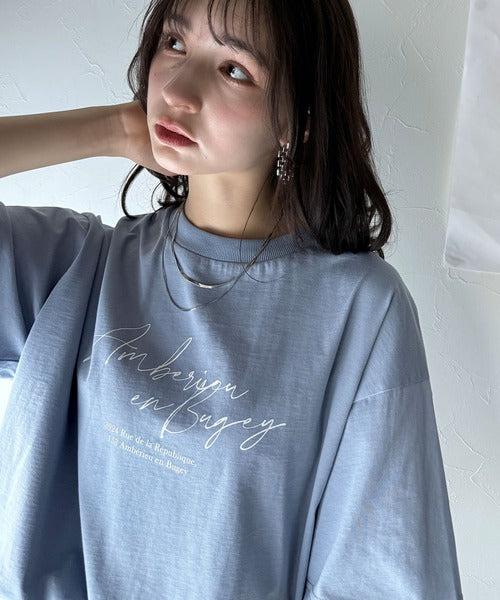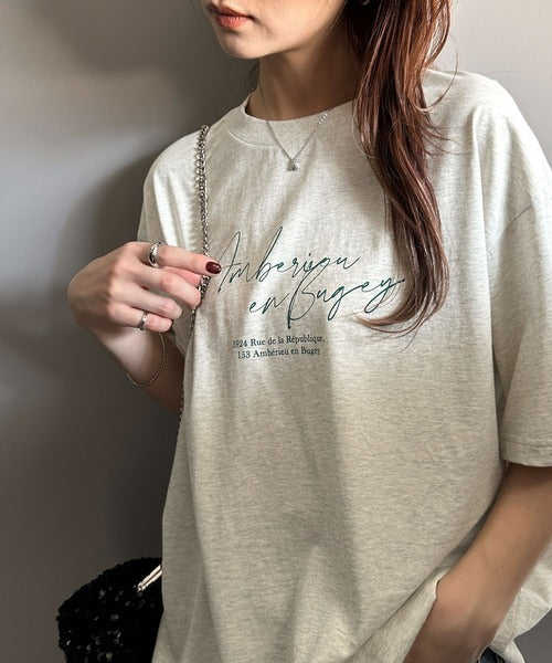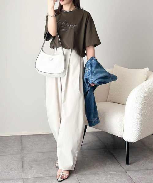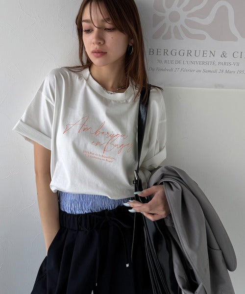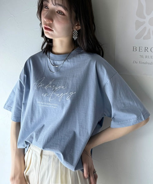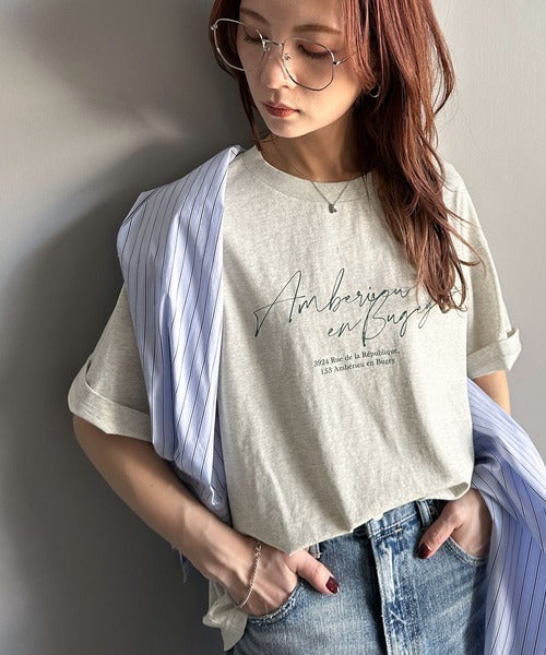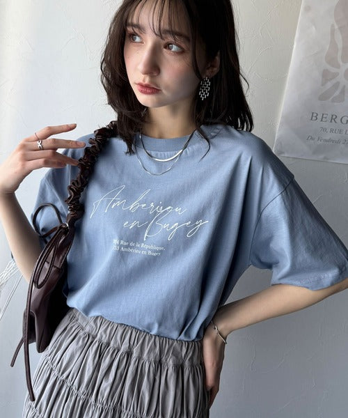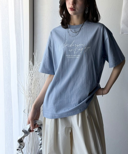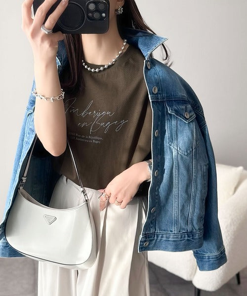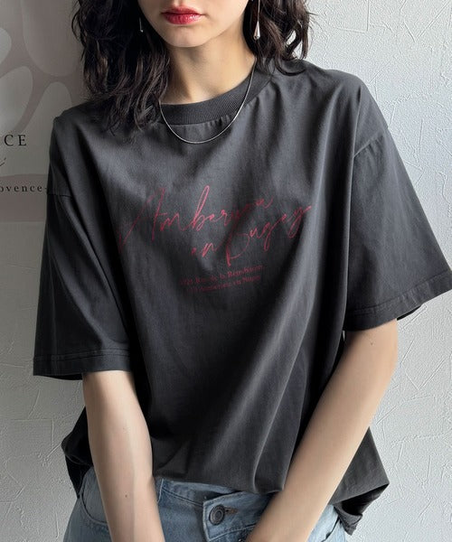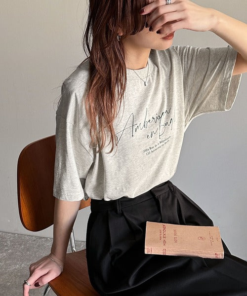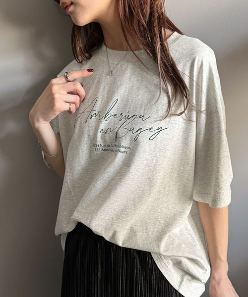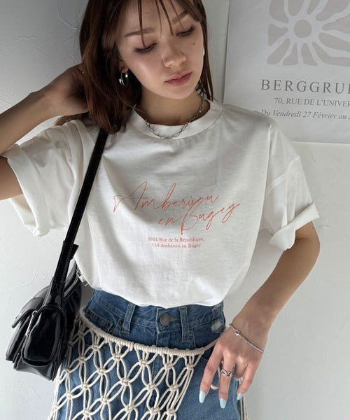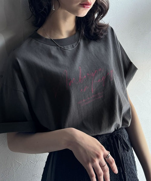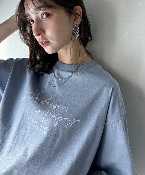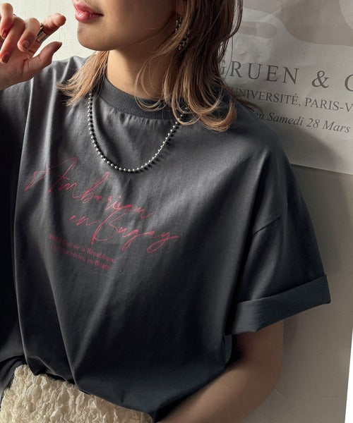 大人カジュアルに映える。綿100%胸元筆記体ロゴなめらかシルケット風Tシャツ(半袖) ce1330030