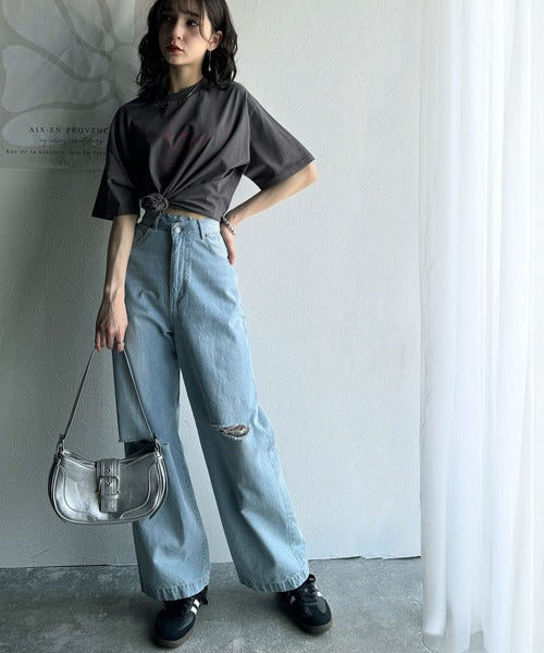 カジュアルコーデを楽しむなら、カーブデニムやフレアパンツを合わせるのがおすすめ!