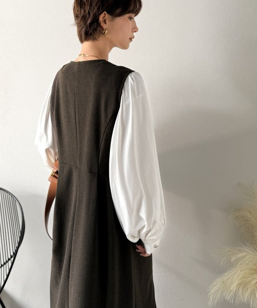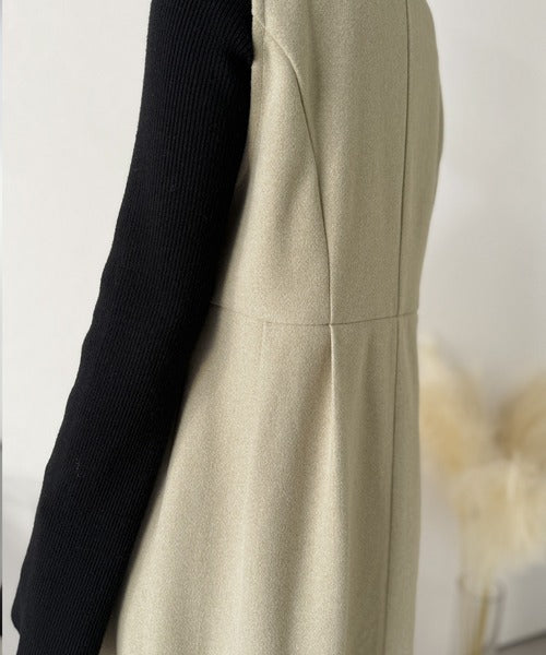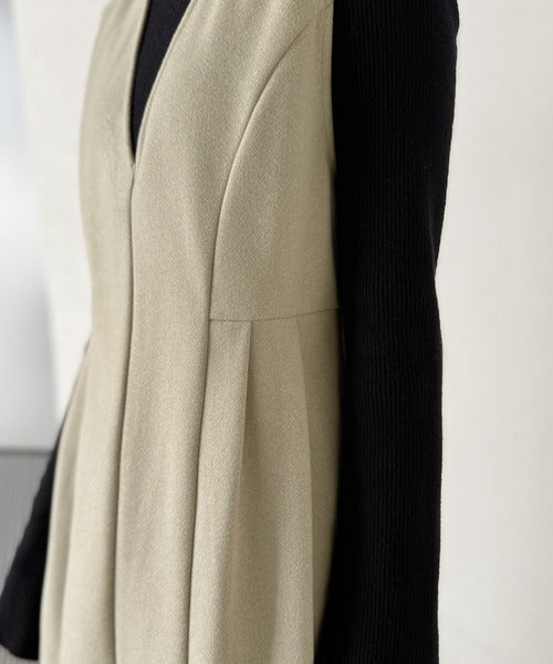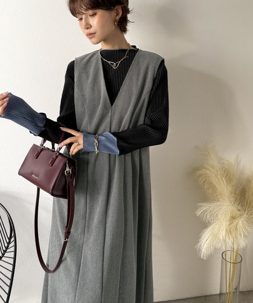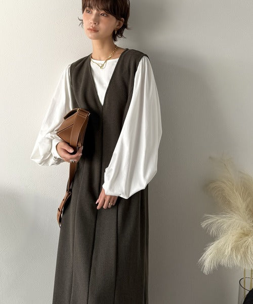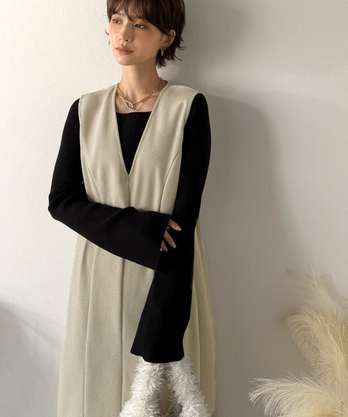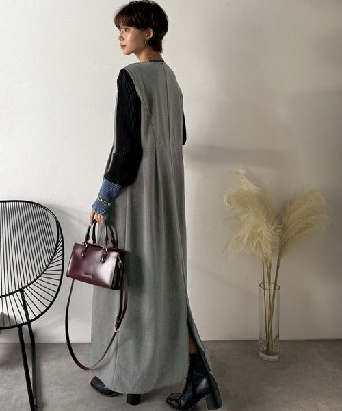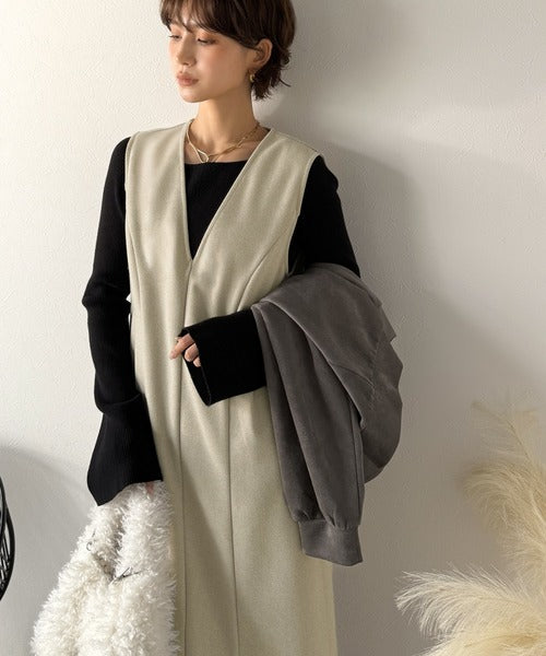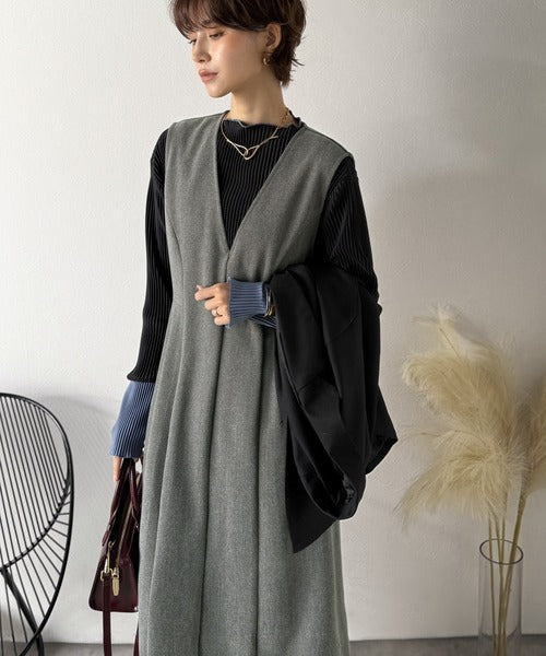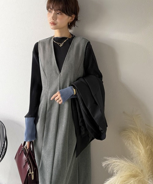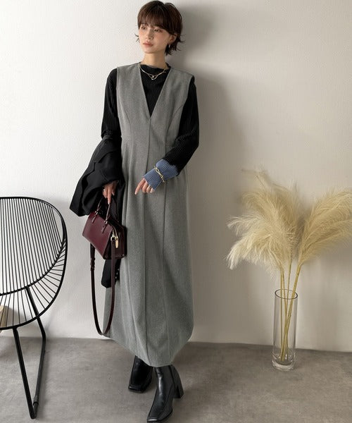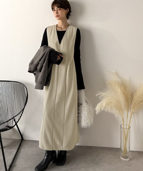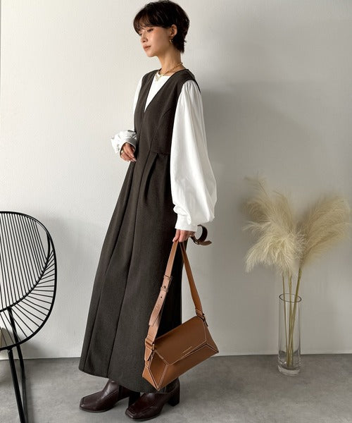 【Classical Evon】一枚で決まる、凛とした美しさ。Vネックウエストタックワンピース(ロング丈) ev1110146