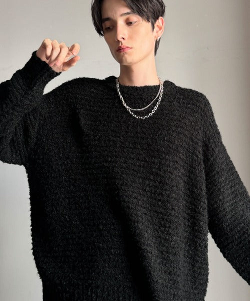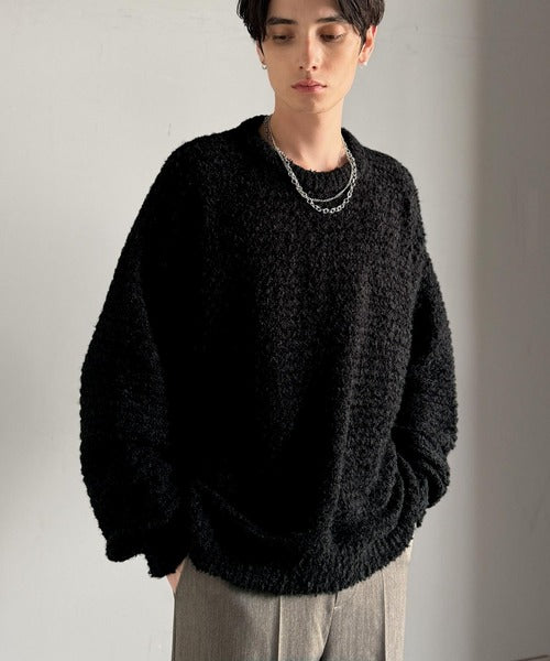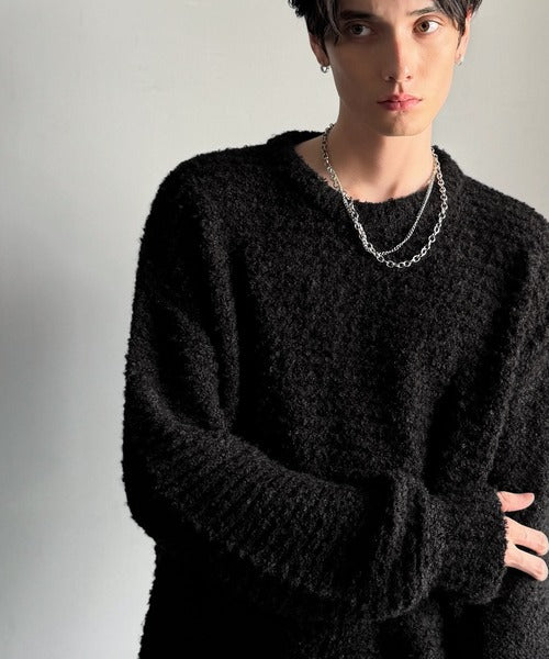 「ブークレー糸クルーネックニットトップス(長袖)/Boucle yarn crew neck knit top」