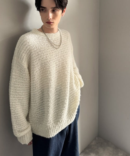 ブークレー糸を使用した柔らかなニット素材で、ふんわりとした膨らみが特徴。