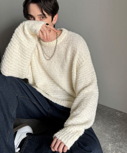 【Classical Origin】「優しさに包まれる。」ブークレー糸クルーネックニットトップス(長袖)/Boucle yarn crew neck knit top ao1020302