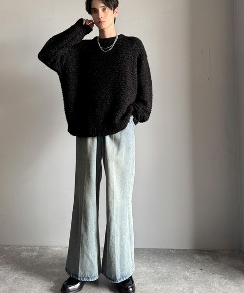 /Boucle yarn crew neck knit top」