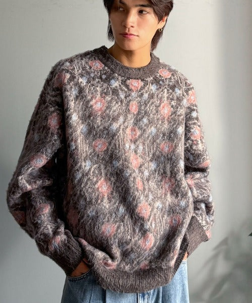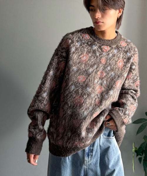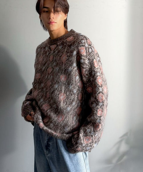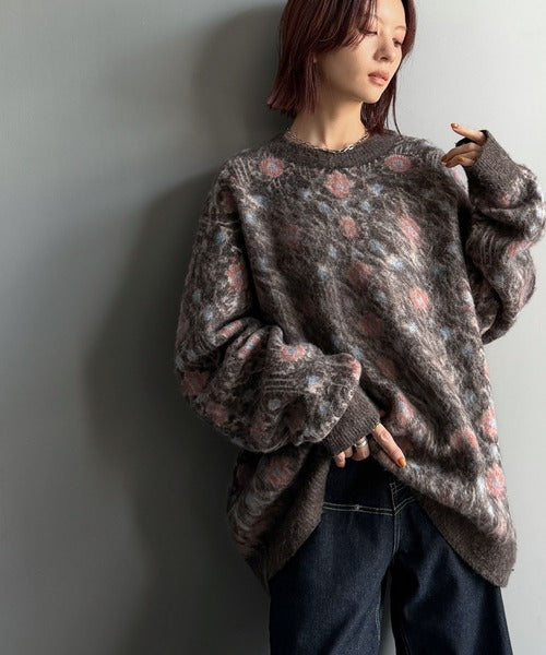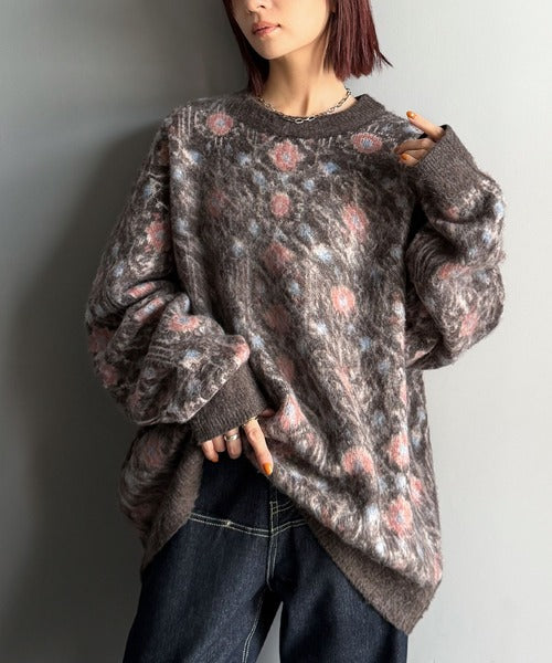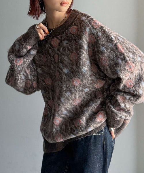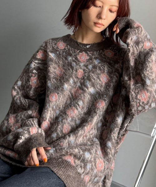 【classical origin】「ヴィンテージな存在感。」アンティークラグモチーフ柄ニットトップス(長袖)/Antique rug motif patterned knit ao1260469