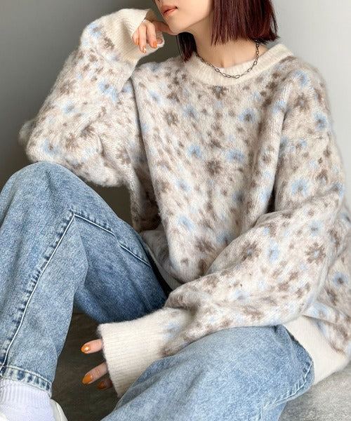 /アンティークラグモチーフ柄ニットトップス(長袖)」