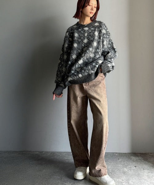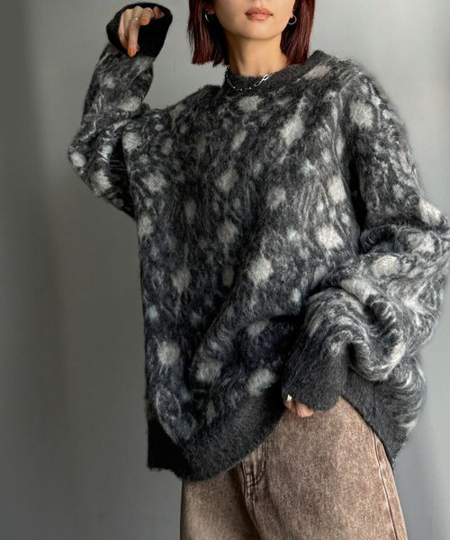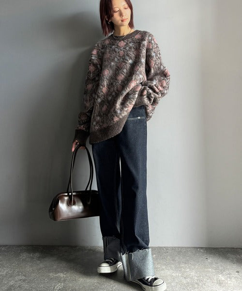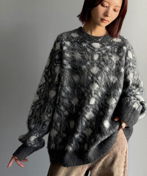 インパクトのあるラグモチーフ柄が魅力のニットトップス。