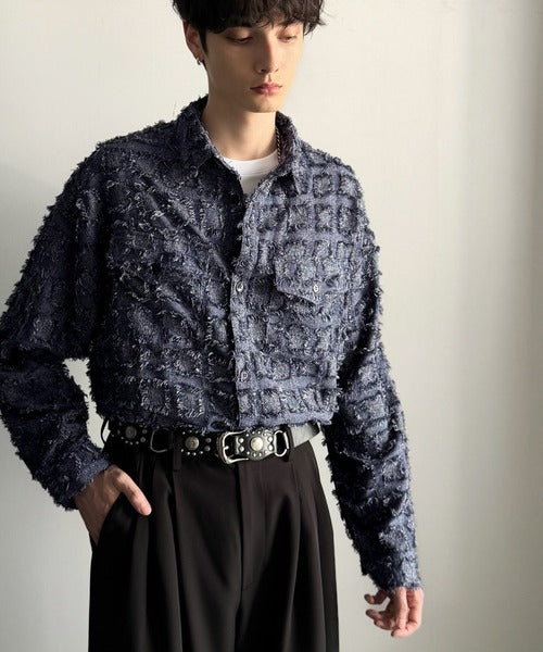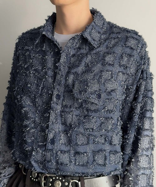 フリンジ素材で魅せる、シンプルなシャツジャケット。