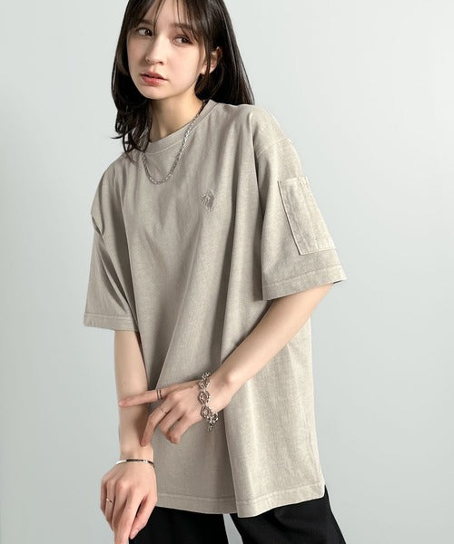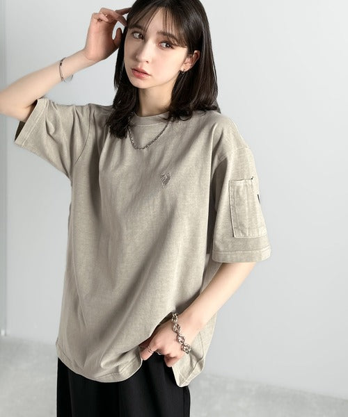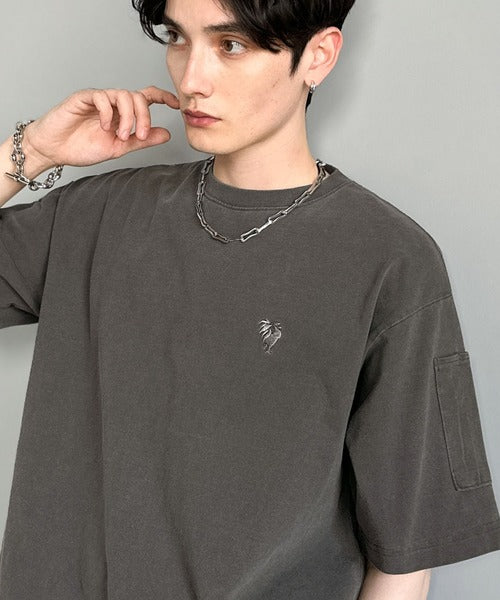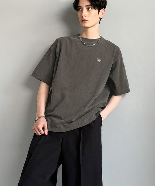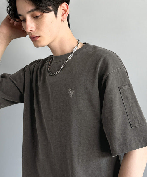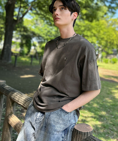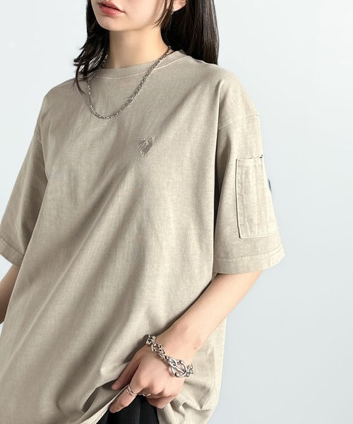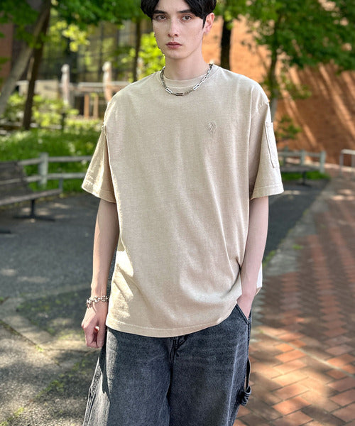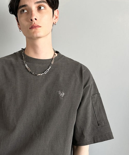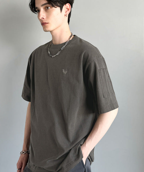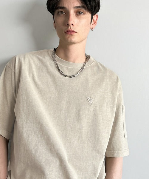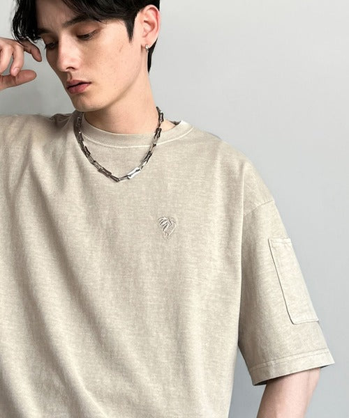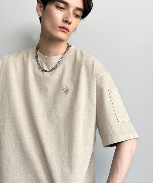 「Sleeve Pocket Pigment-Dyed Embroidery T-Shirt/