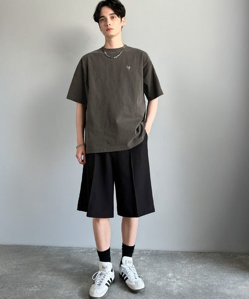 袖ポケット付きピグメント加工刺繍入りTシャツ」