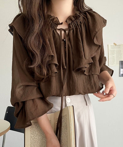 長袖のキャンプカラーは、台襟がないフラットな襟元が特徴。