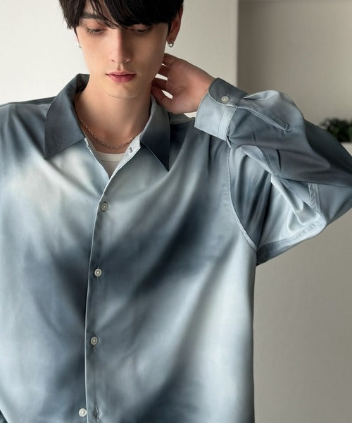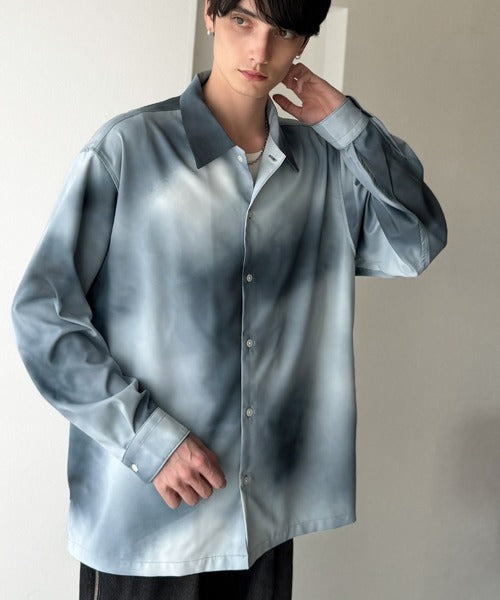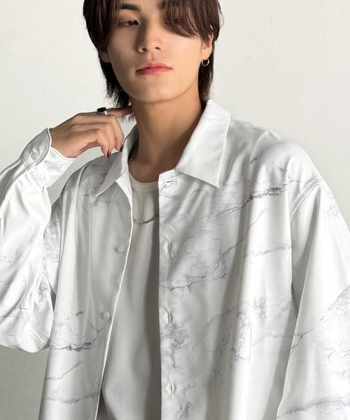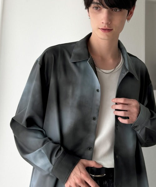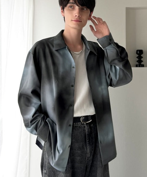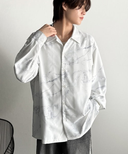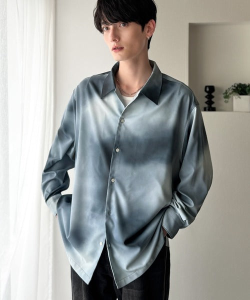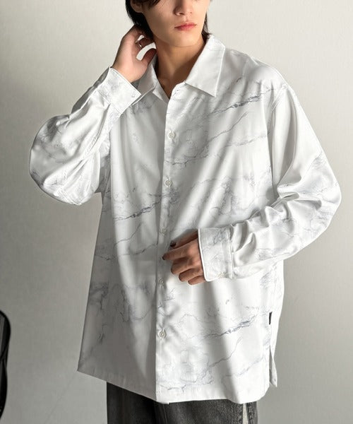 【Classical Origin】「都会的スタイル」。総柄ドレープキャンプカラーシャツ(長袖)/Relaxed Drape All-Over Pattern Camp Collar Shirt co1150039