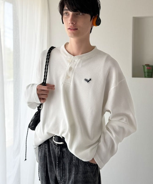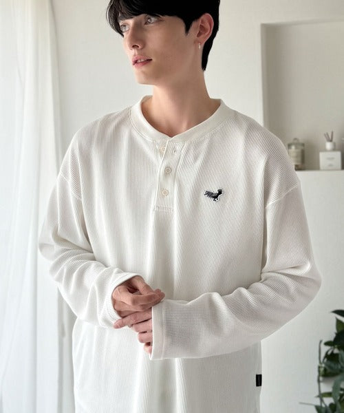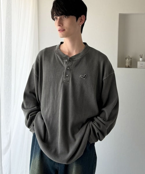 ピグメント加工サーマルヘンリーネックTシャツ」