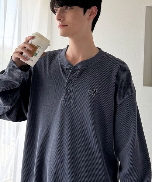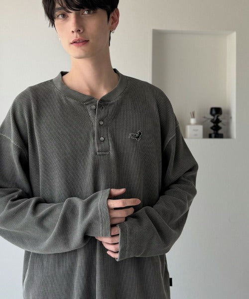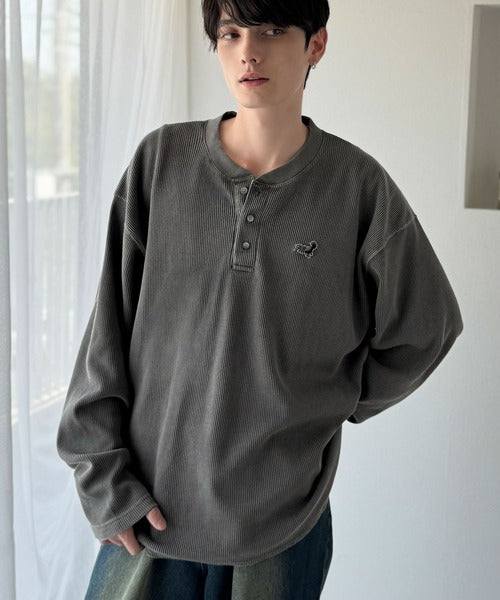 「Pigment-Dyed Thermal Henley T-Shirt/