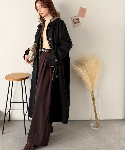 上品を纏う、主役級アウター。ロング丈比翼ステンカラーコート ce1265006