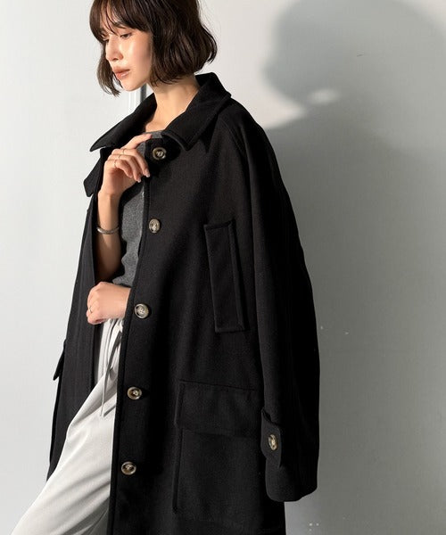 高級感漂うメルトンジャージ素材を使用したロング丈コート。